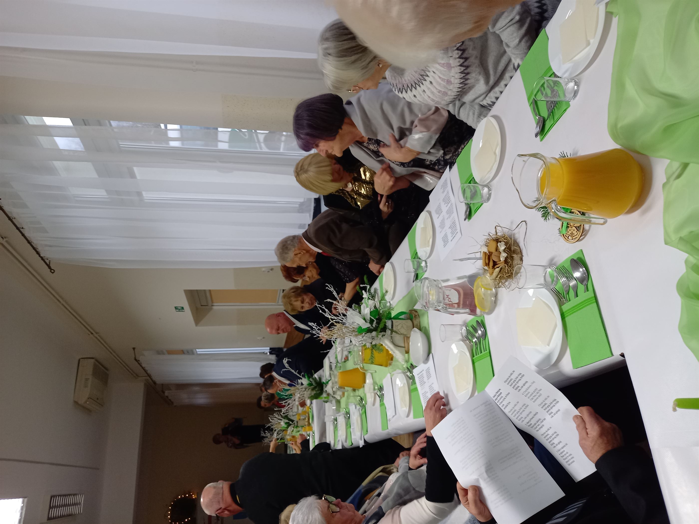 Seniorzy z Klubów Seniora Gminy Jasło spotkali się przy wigilijnym stole w Trzcinicy. Dzielili się opłatkiem oraz życzyli sobie przede wszystkim zdrowia. Nie zabrakło wspólnej modlitwy oraz śpiewania kolęd. Na stołach pojawiły się wigilijne potrawy.