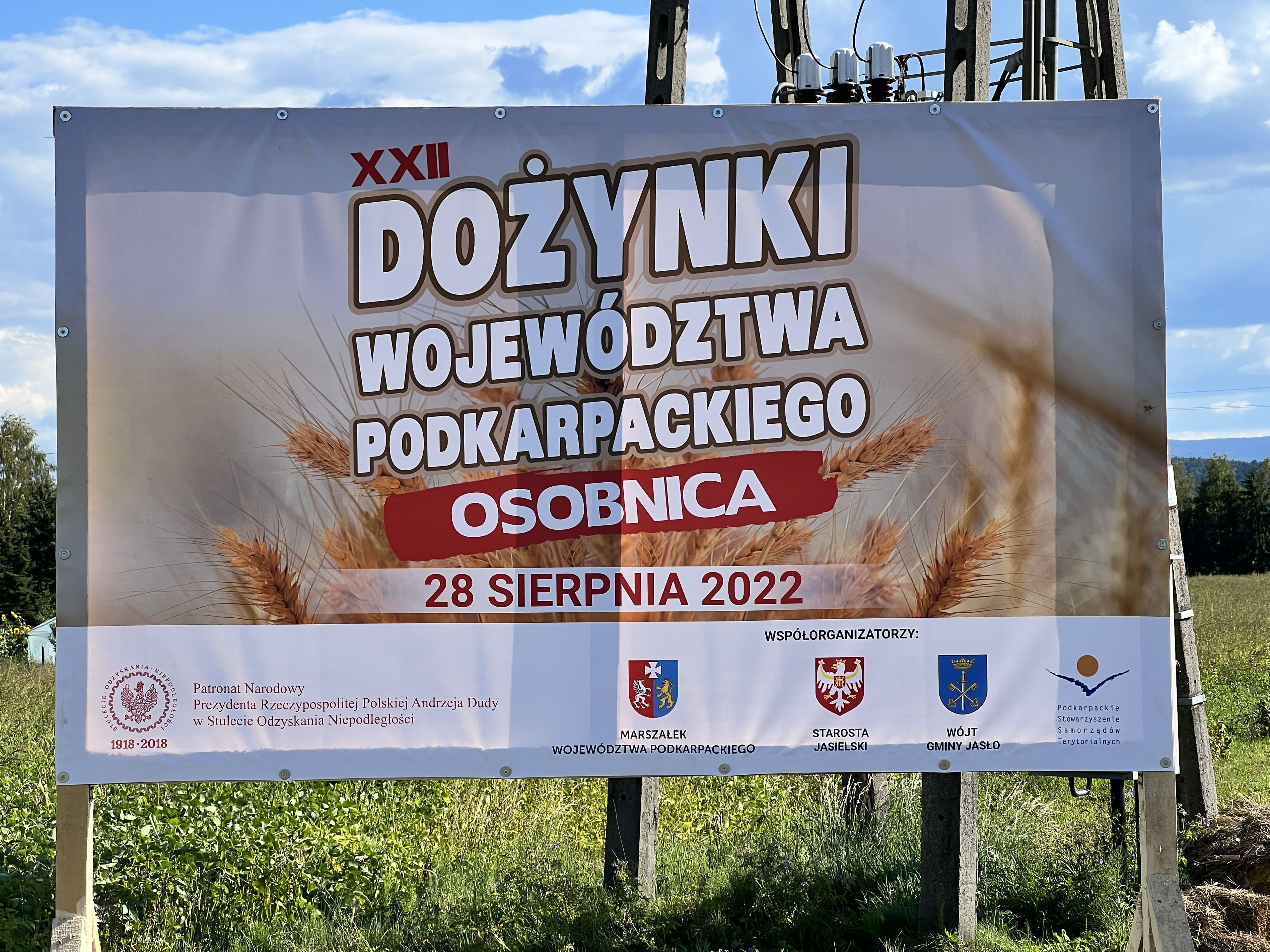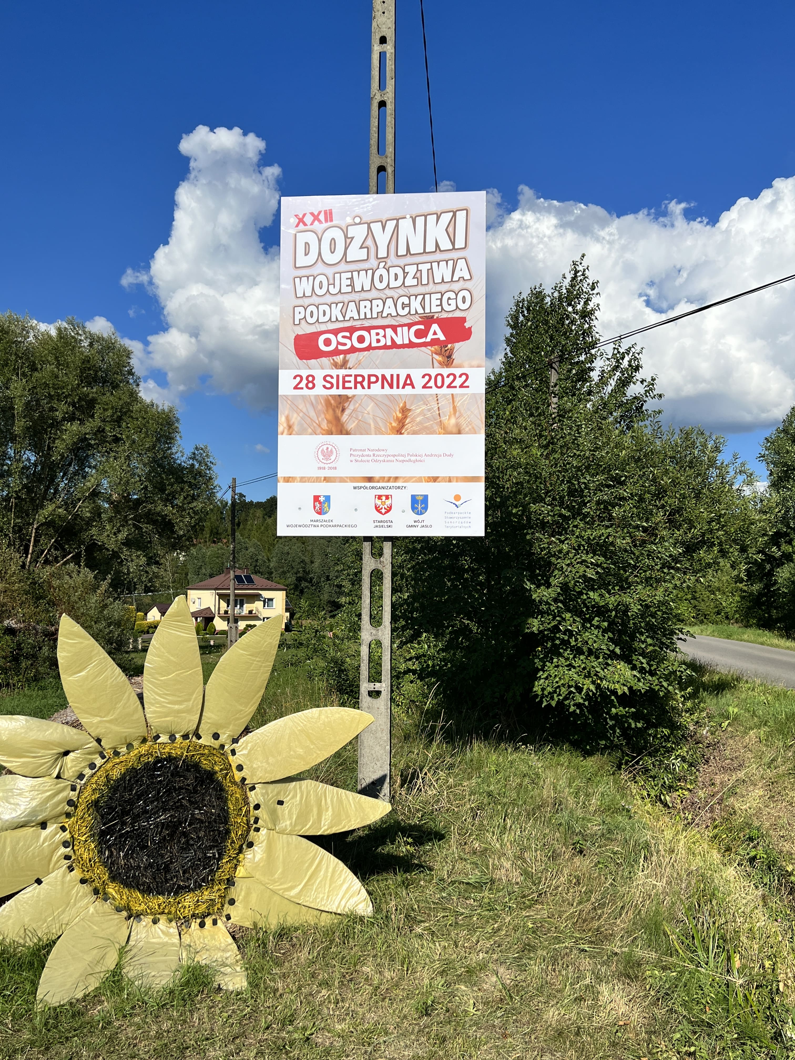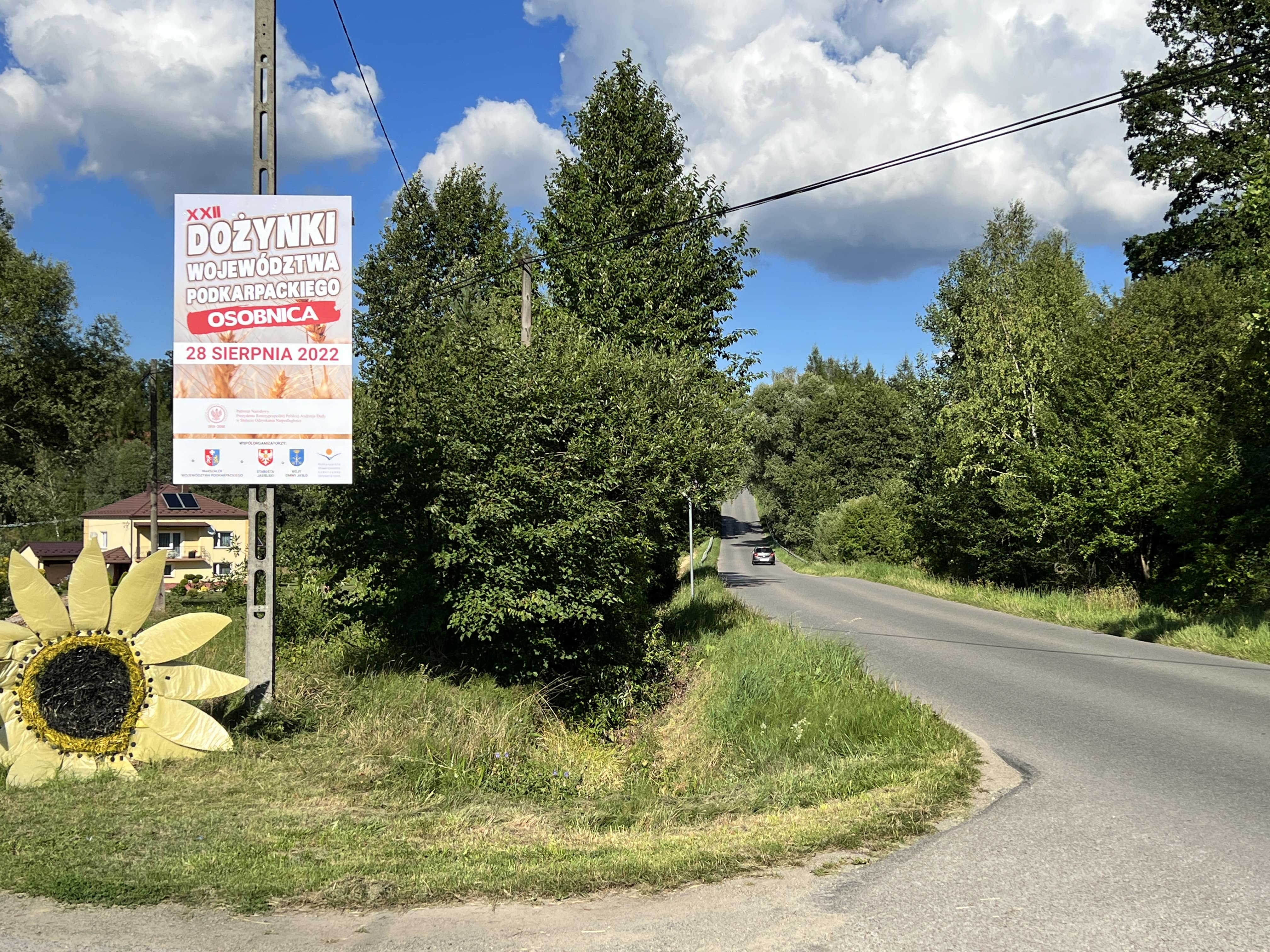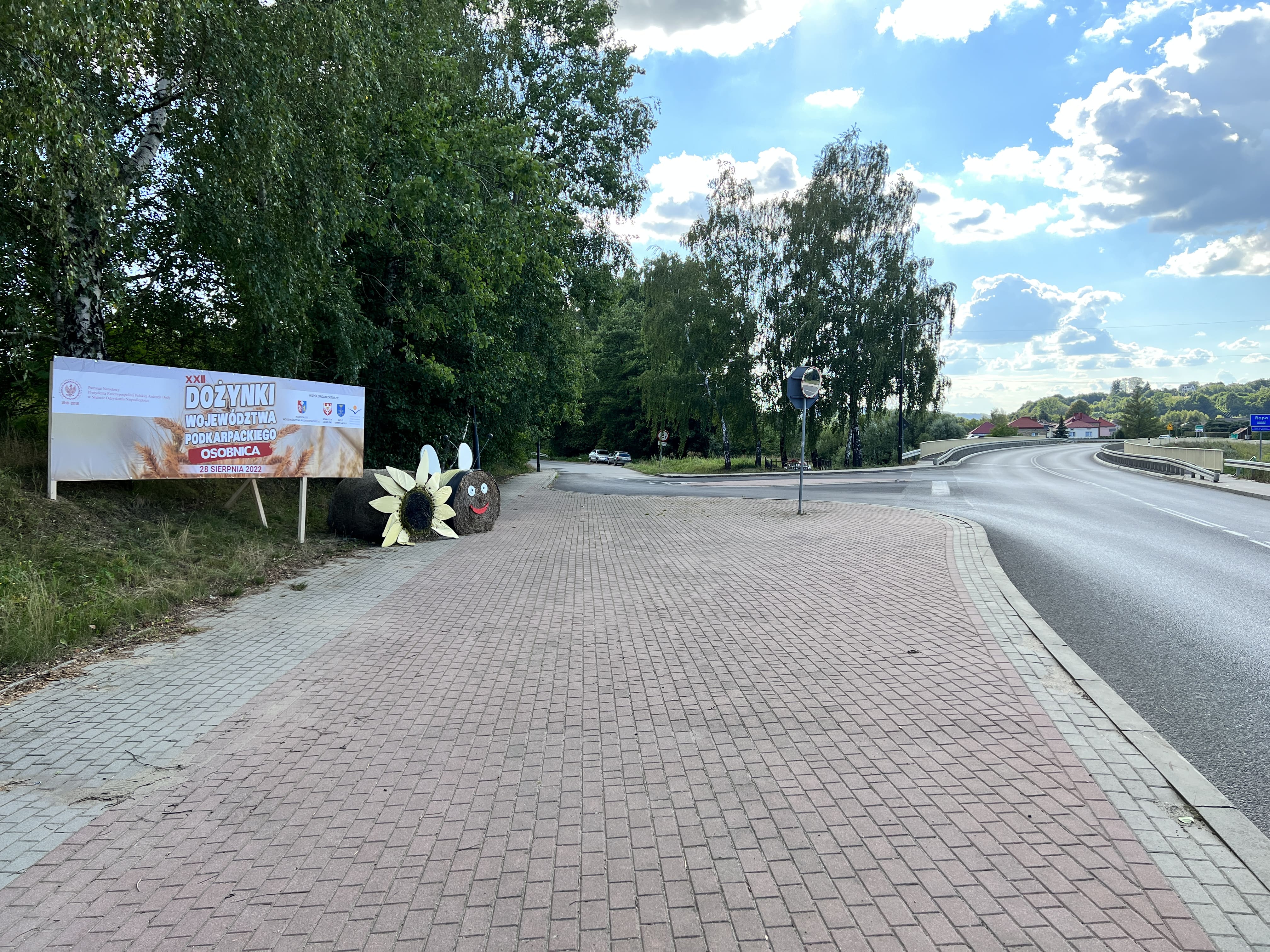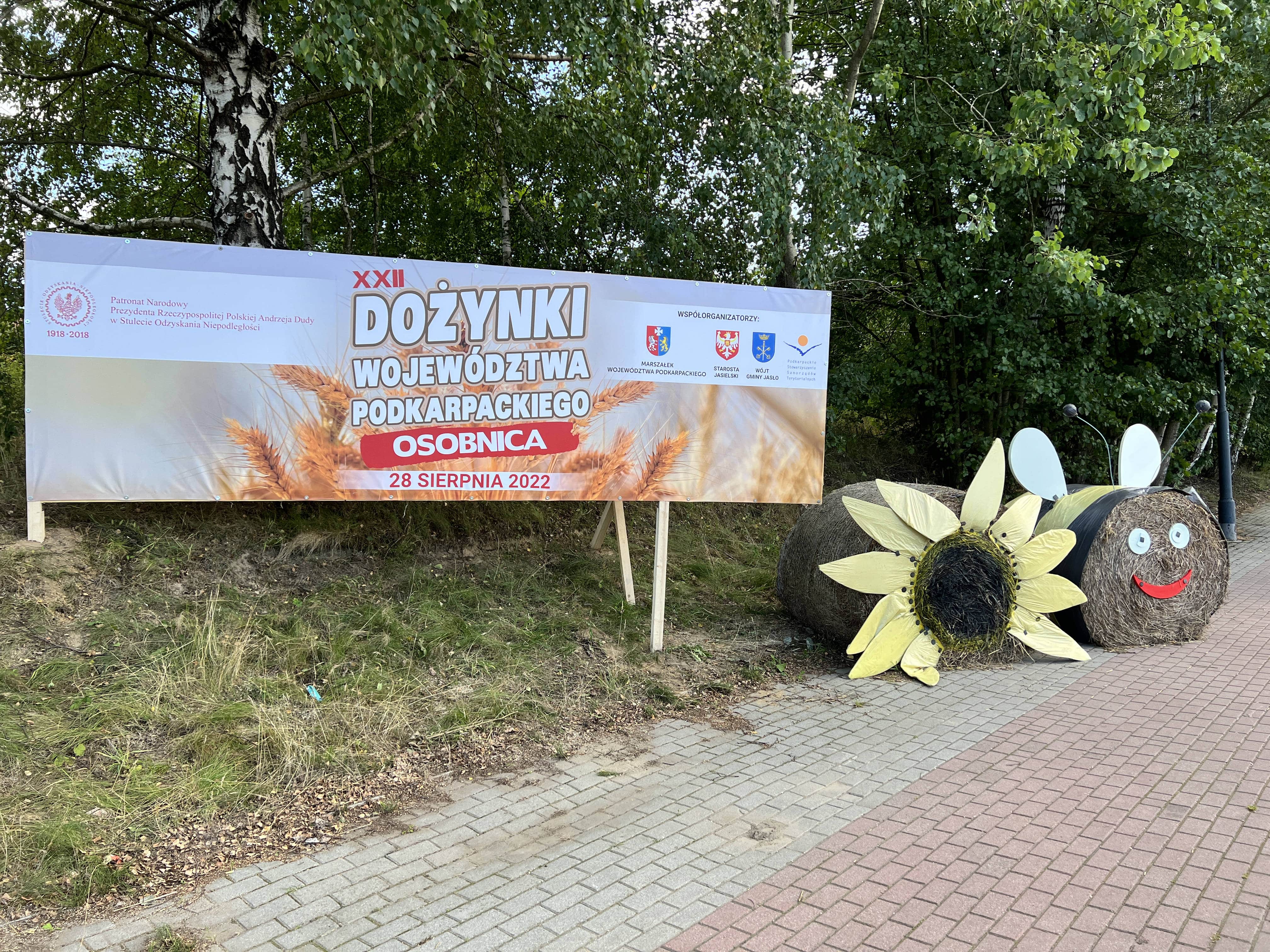 Dożynki Województwa Podkarpackiego w Osobnicy zbliżają się wielkimi krokami. O wydarzeniu, które odbędzie się 28 sierpnia informują przechodniów oraz przejezdnych dożynkowe ozdoby.