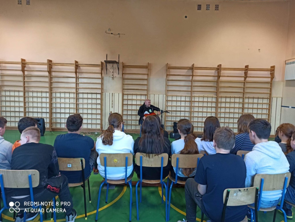 W Szkole Podstawowej nr 1 oraz nr 2 w Osobnicy dla uczniów klas VI, VII i VIII odbyły się muzyczne warsztaty profilaktyczne w wykonaniu Pana Sławomira Pyrko pn.: "Wspierajmy się! Cyberpułapka, czyli więzienie bez krat".