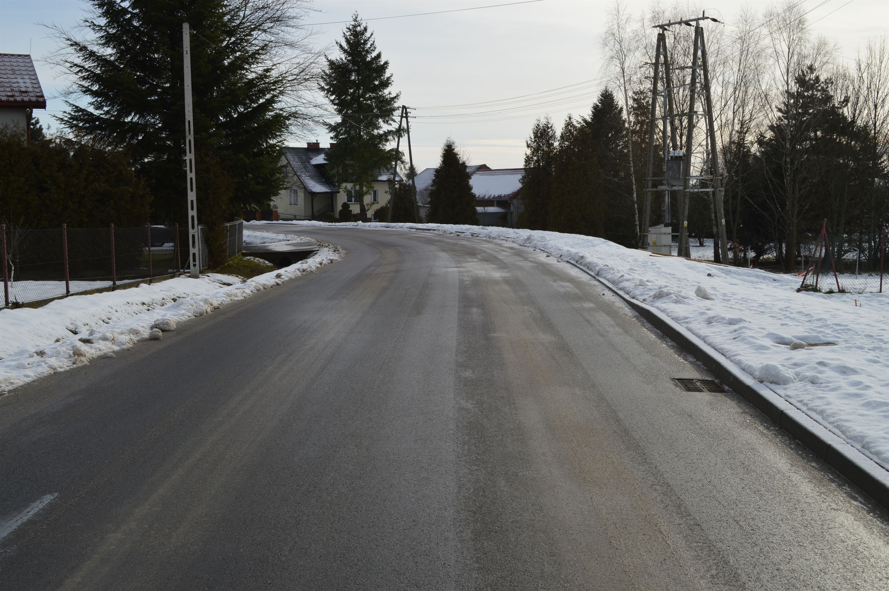 Jezdnia - przebudowana i doprowadzona do szerokości 5,5 m - zyskała nową nawierzchnię. Uzupełniono również pobocze i wzmocniono przepust pod koroną drogi. Wykonano system odwodnienia oraz przebudowano zjazdy z posesji indywidualnych.