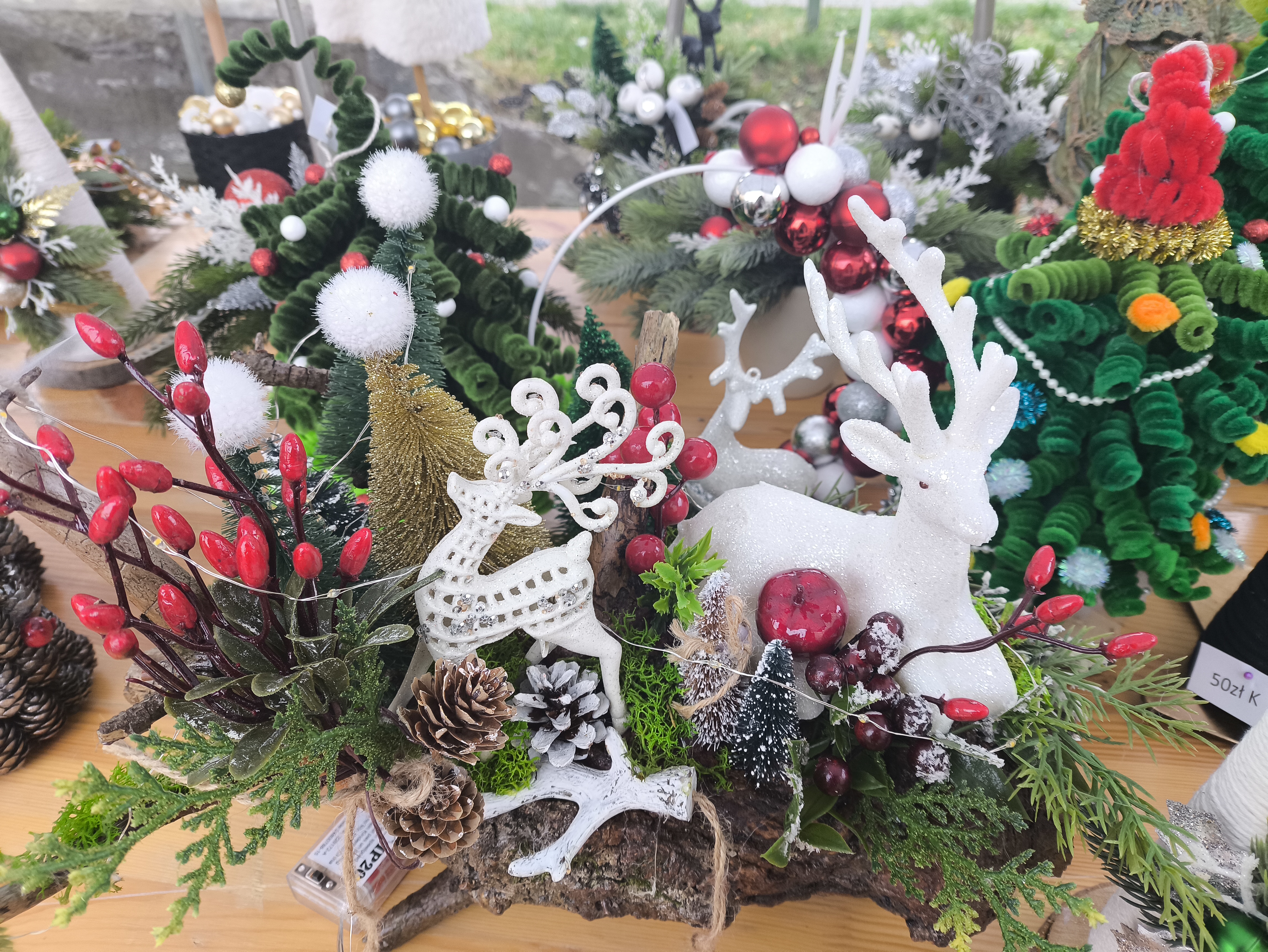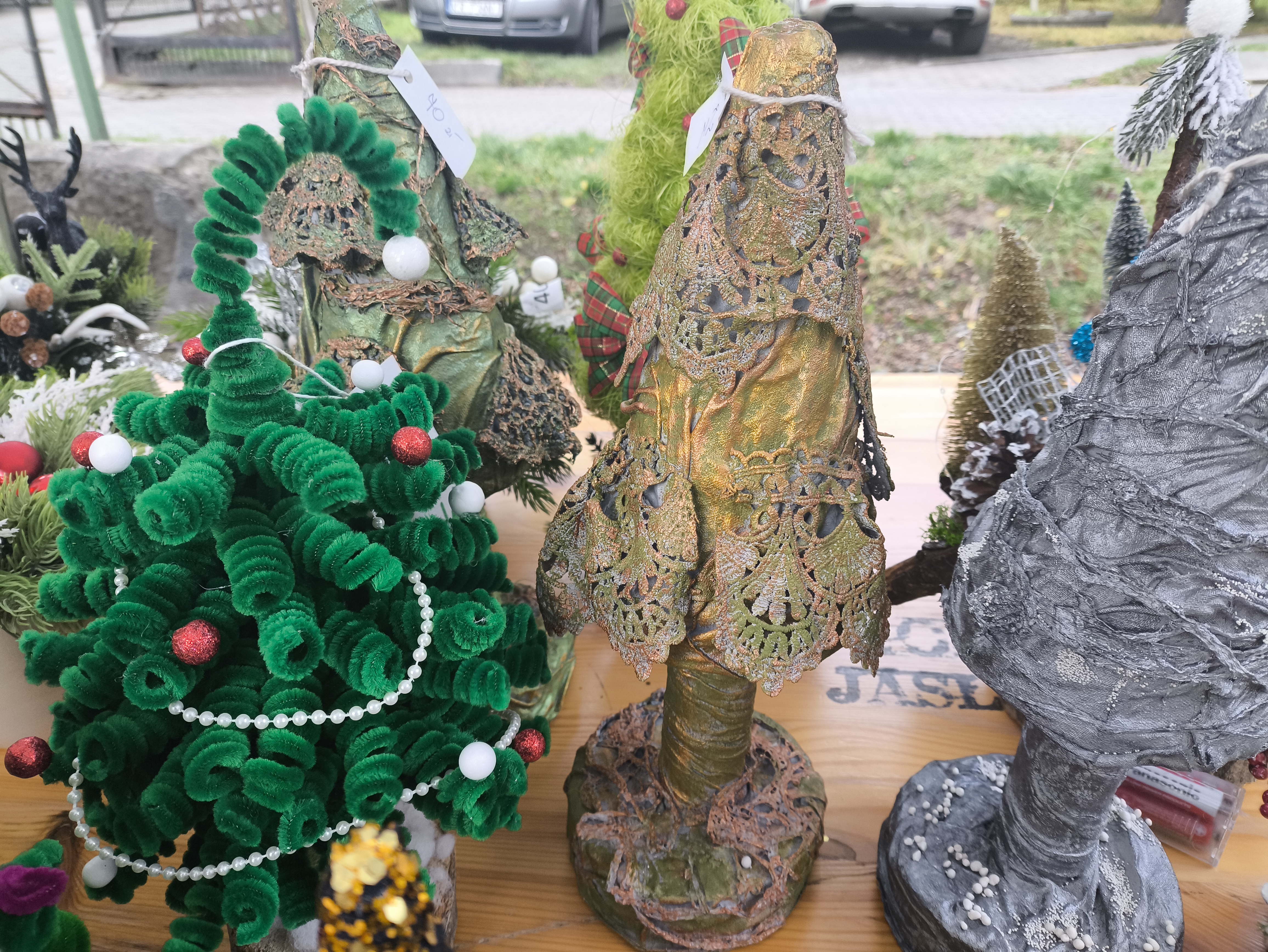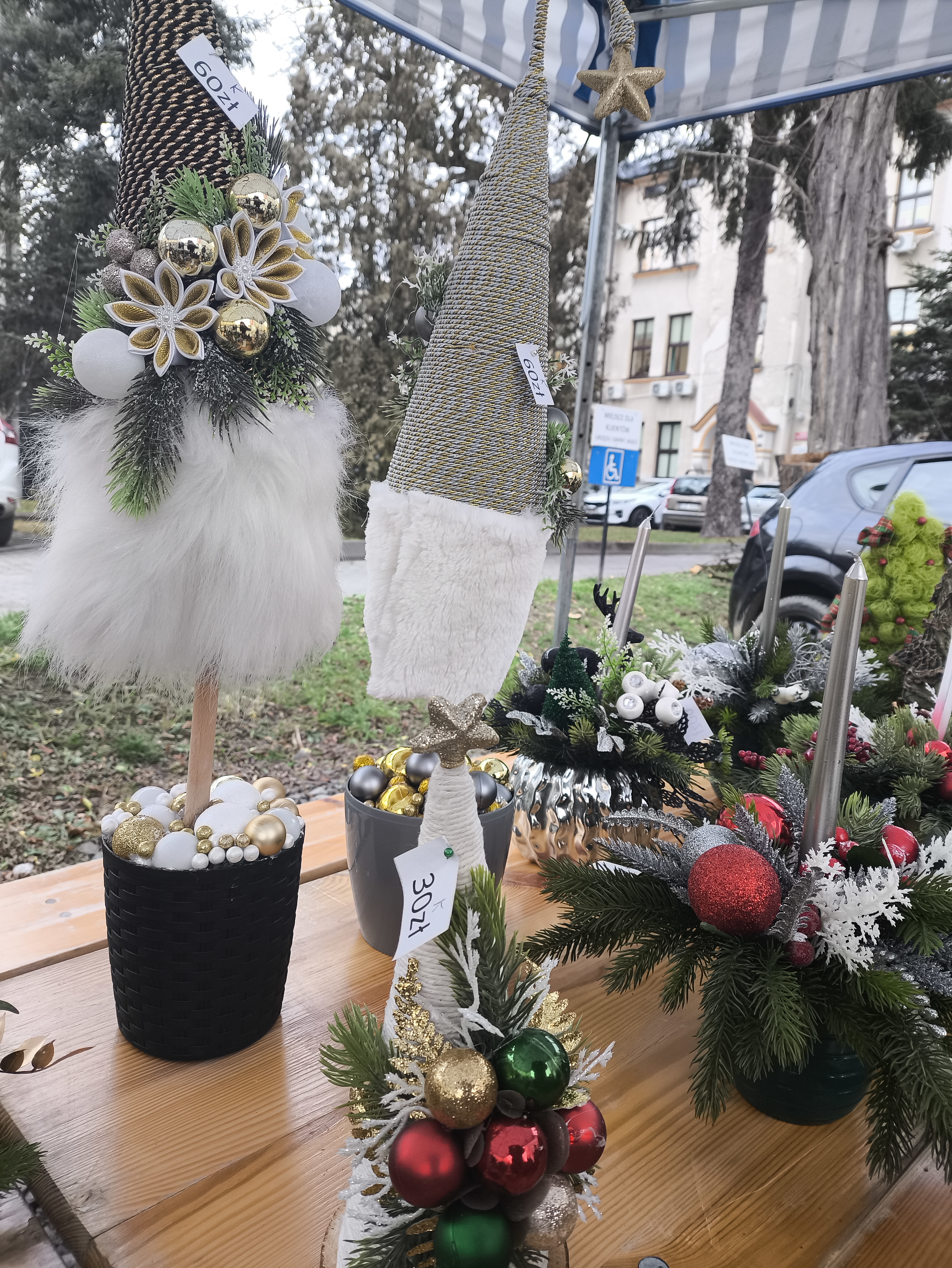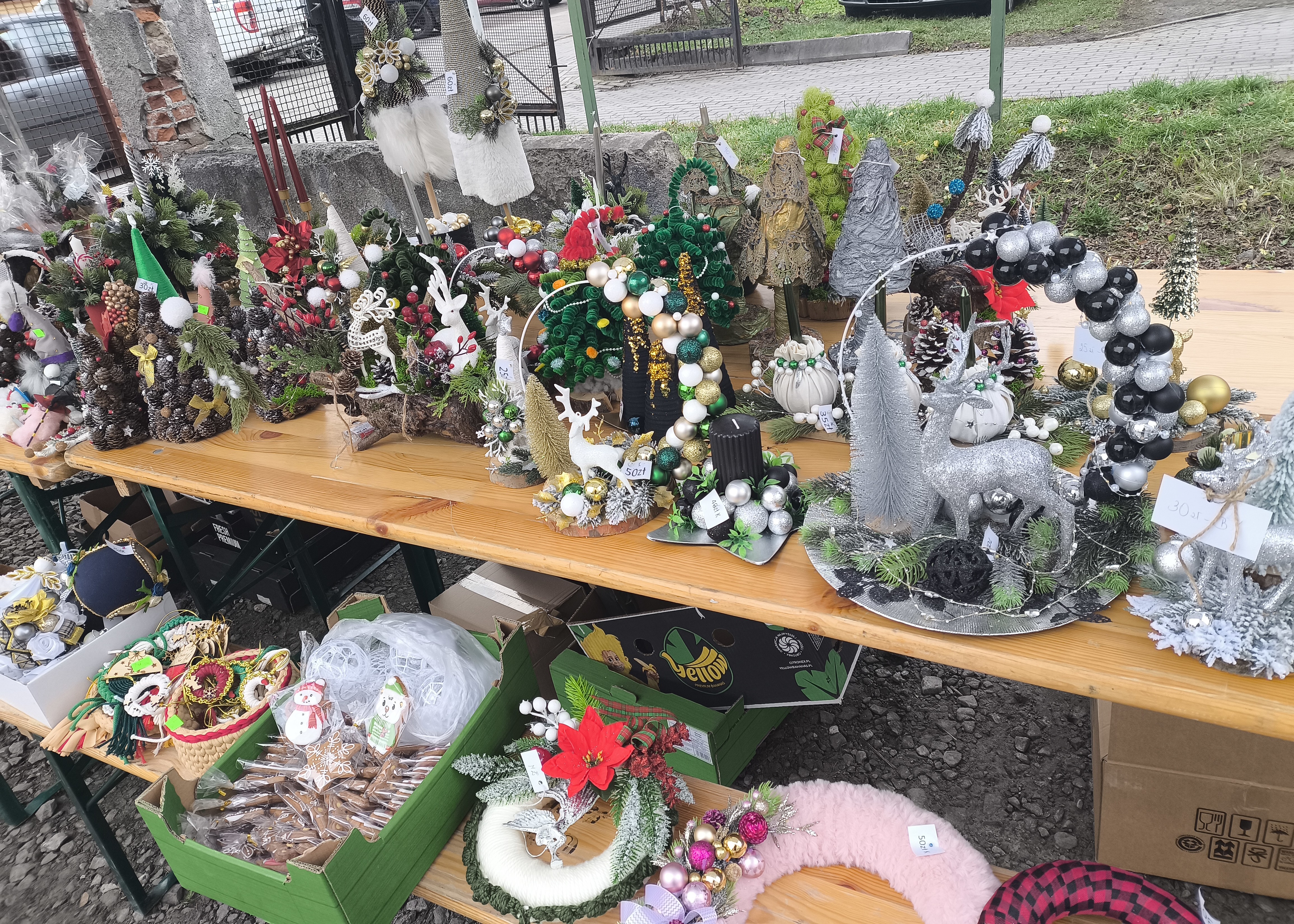 Zakupić można ręcznie wykonane ozdoby świąteczne. Ozdoby wykonały Panie z Gminnego Ośrodka Kultury w Jaśle.