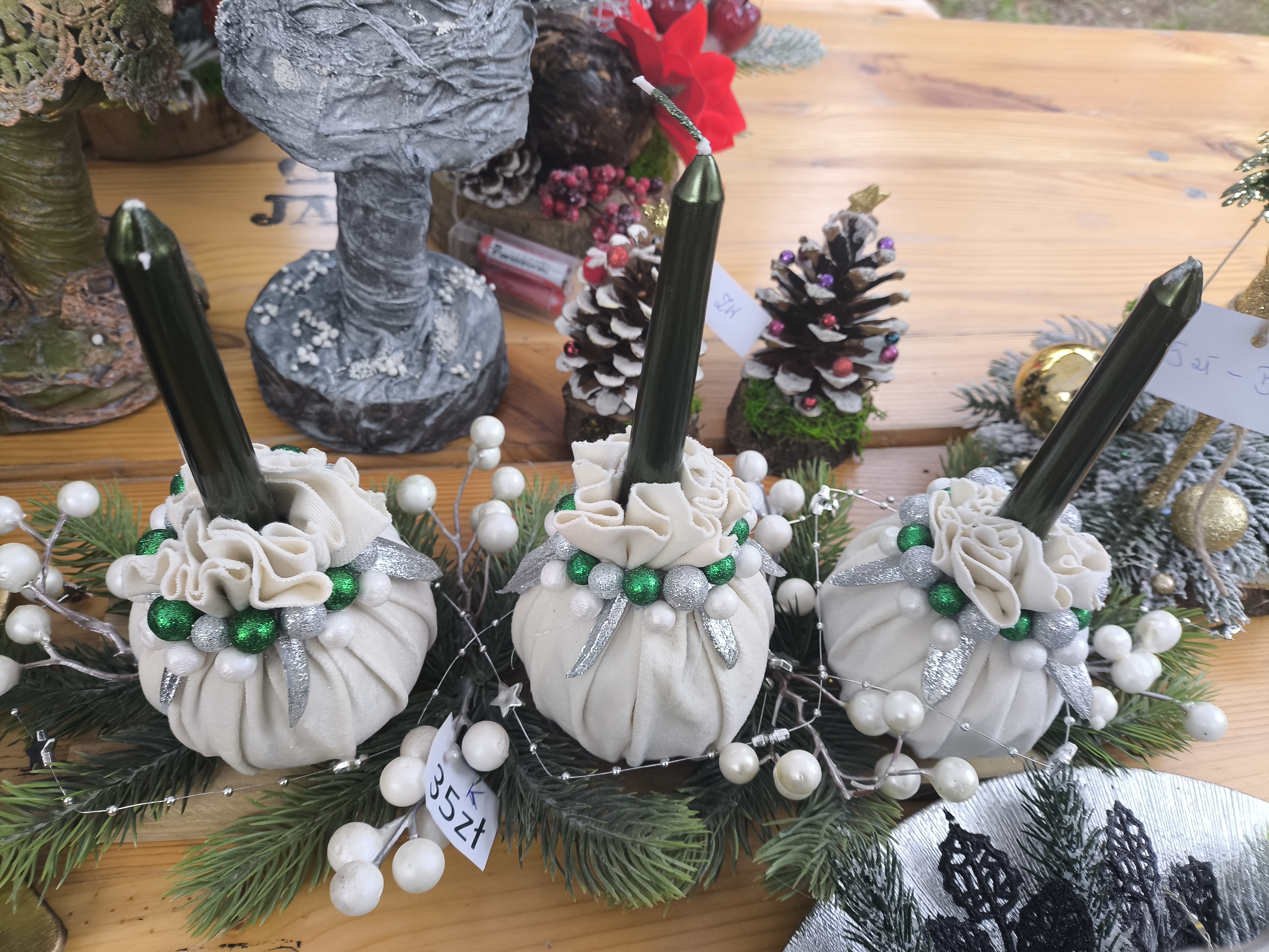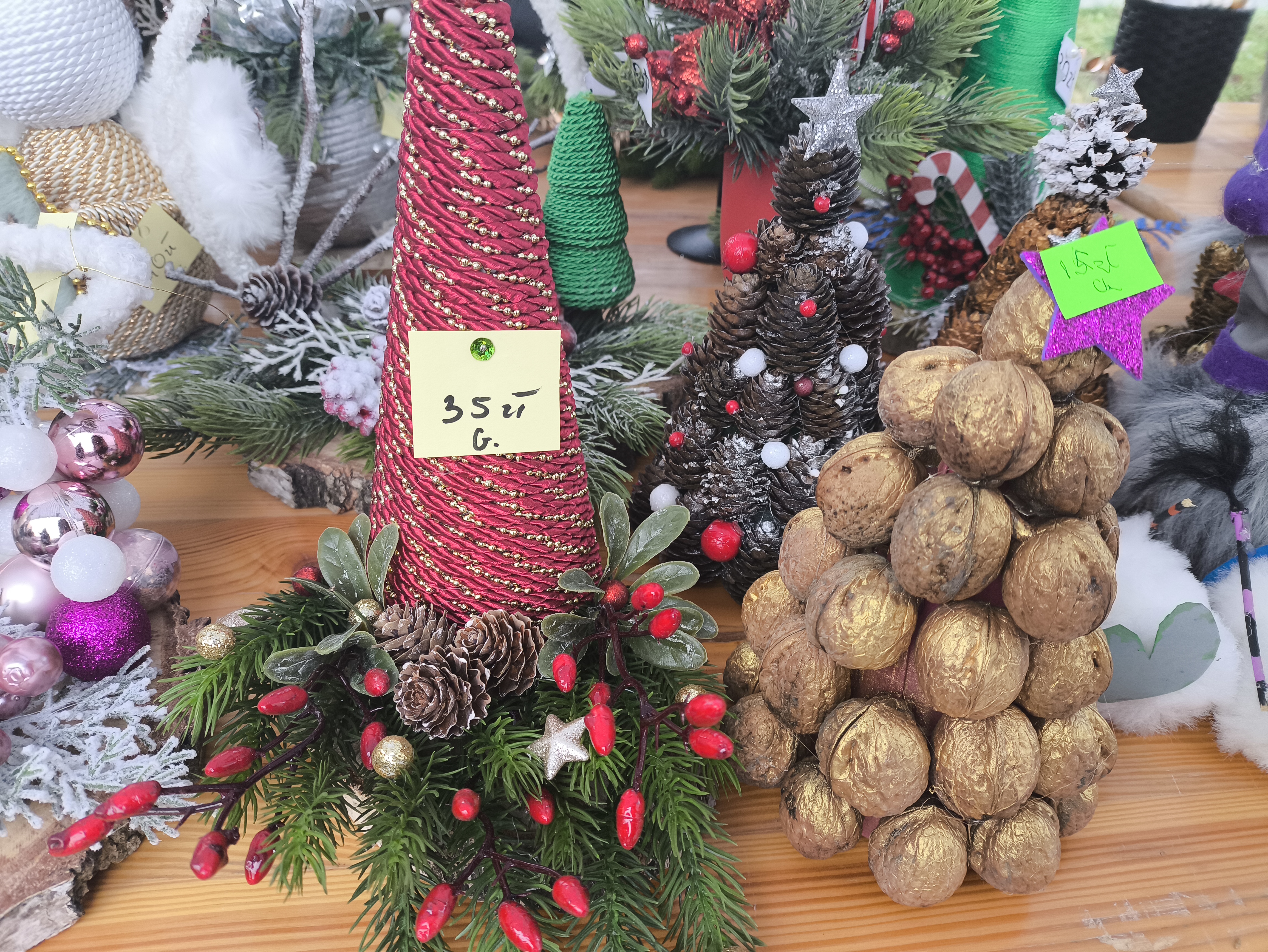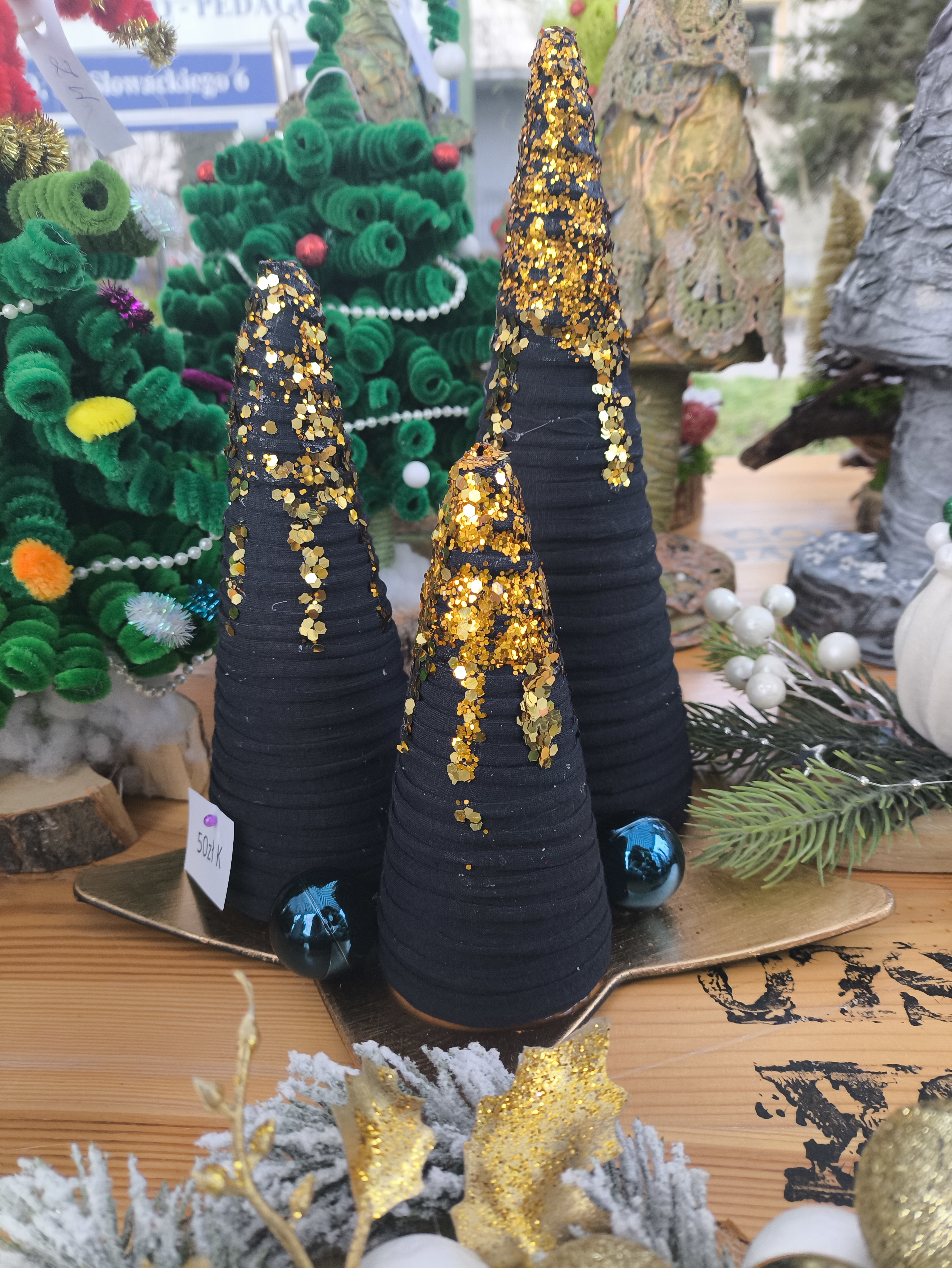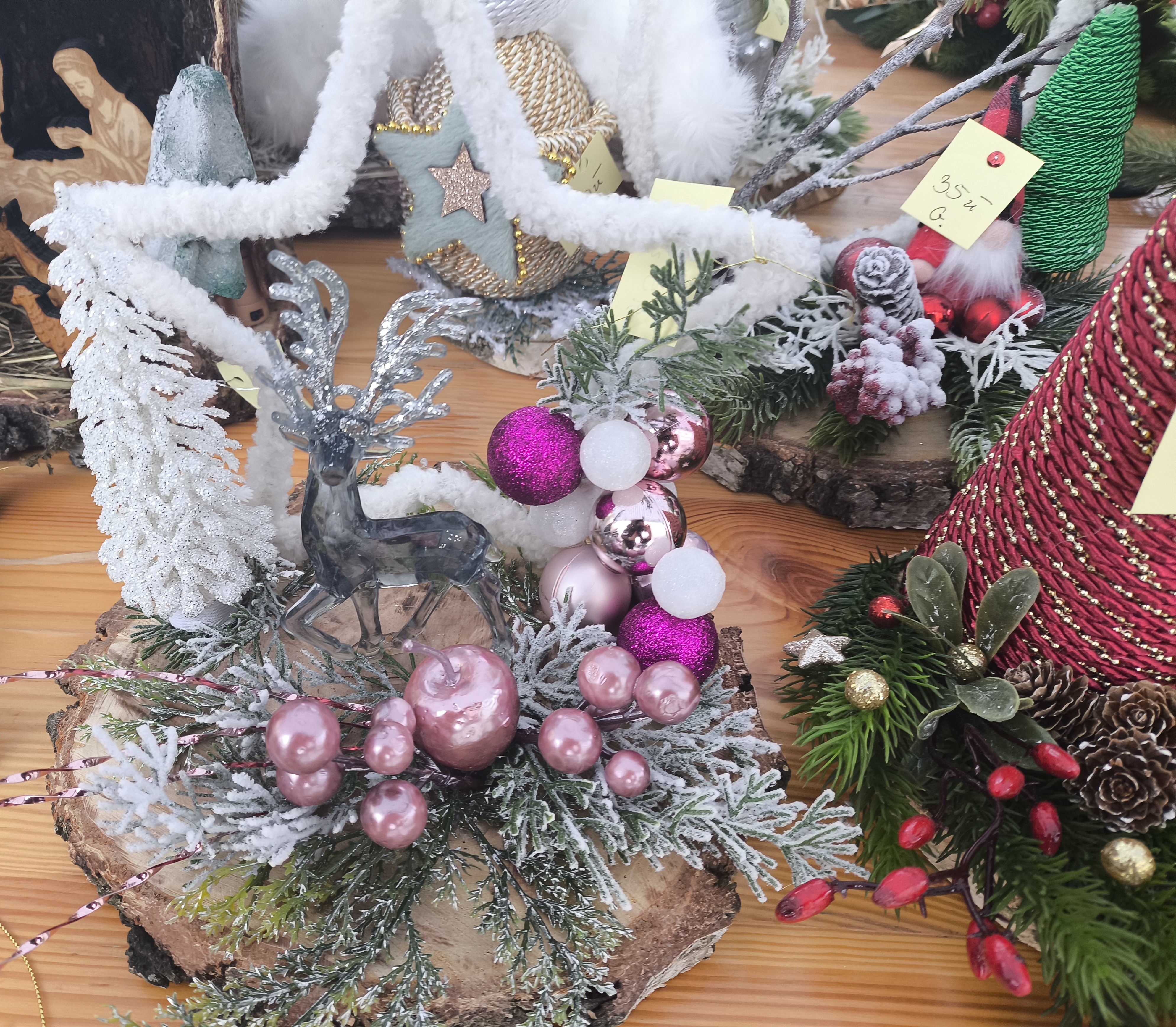 Zakupić można ręcznie wykonane ozdoby świąteczne. Ozdoby wykonały Panie z Gminnego Ośrodka Kultury w Jaśle.