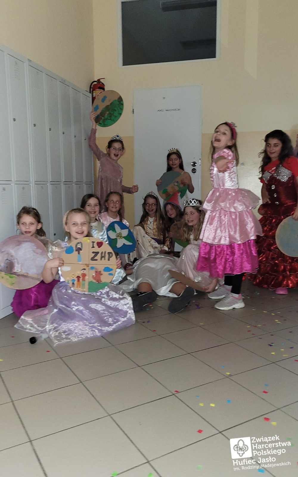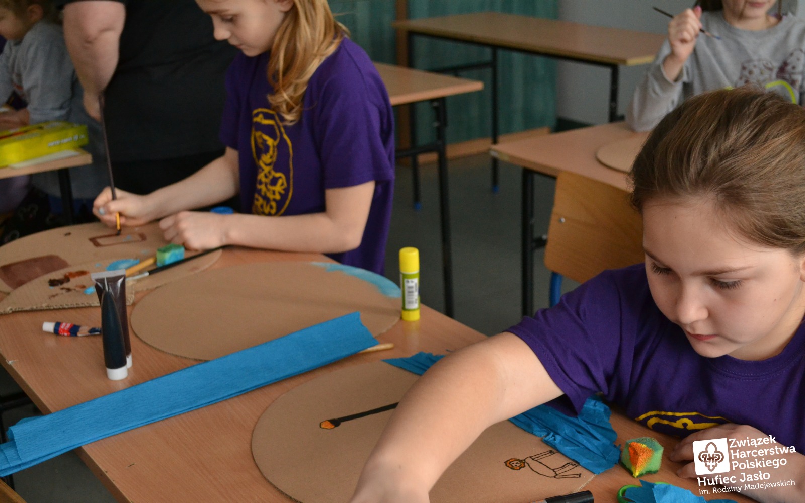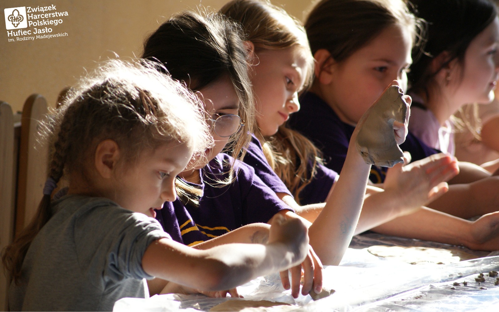 Sobota od rana była bardzo intensywnym dniem! Każdy miał okazję spróbować swoich sił w różnorodnych dziedzinach. Strzelaliśmy z łuków, lepiliśmy w glinie, przygotowywaliśmy tarcze do walki z Białą Czarownicą i uczyliśmy się savoir-vivre'u. Po południu zaś walczyliśmy w piankowym turnieju rycerskim i malowaliśmy śnieżnobiałe koszulki. Wieczór tradycyjnie przyniósł spotkanie przy świeczkowisku - pełnym emocji i wrażeń! Porywani szóstkami przez Wilczycę musieliśmy zdecydować się na loch lub walkę z Białą Czarownicą. Zgodnie jednak z drugim Prawem Zucha każdy zuch dzielnie podjął się gry! Niestraszna była ciemność rozświetlana gdzieniegdzie przez świeczki. Niestraszna nam również była biała postać na szczycie schodów. Księżniczki i rycerze, używając sprytu i serpentynowej broni, pokonali złą postać i z tryumfalnymi okrzykami wracali do auli.