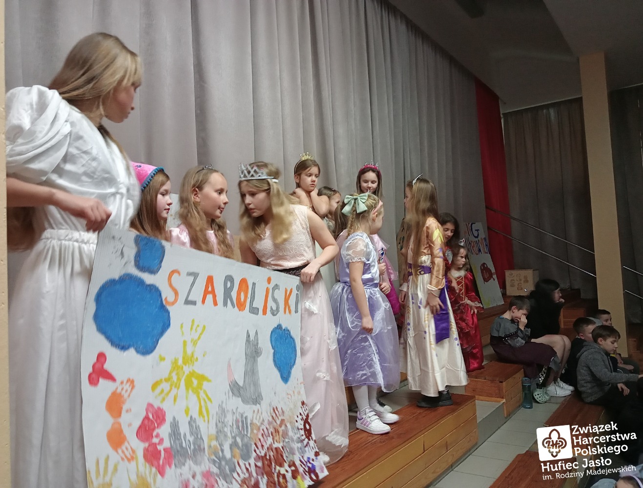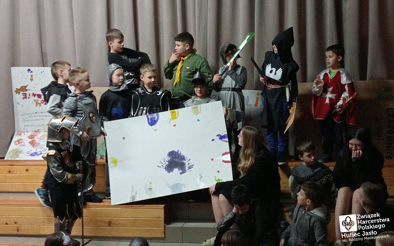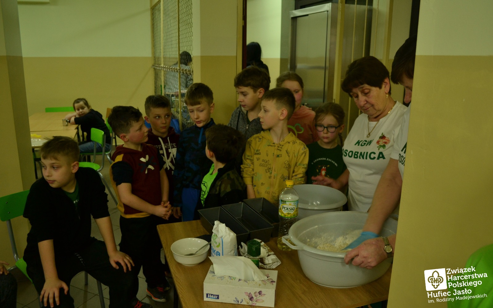 Mżawka, obce mury ceglastej posiadłości i dzieci gotowe na ciekawą przygodę... Rozpoczęliśmy ją w Osobnicy w ostatni piątek, 9 lutego 2024 r. od zwiadu, podczas którego napotkanym zadawaliśmy pytania, wprowadzające nas w magiczny świat Narnii. Jak się nazywają ptasie czekoladki? Kiedy kończy się zima? Co rycerz potrzebuje do walki z Białą Czarownicą? Ubogaceni wiedzą i doświadczeniem mieszkańców wróciliśmy do szkoły, by tam kontynuować poszukiwania nieodkrytych zakamarków. Po południu dzięki paniom z lokalnego Koła Gospodyń Wiejskich mogliśmy poznać sekretny przepis i zobaczyć, jak przygotowuje się wiejski chleb. Następnie tradycyjnie w szóstkach przygotowywaliśmy obrzędowość - jak zwykle ręka w rękę z wyobraźnią stworzyliśmy plakaty, pląsy, piosenki i okrzyki. Wieczorem zaś po przejściu przez drzwi tajemniczej szafy przenieśliśmy się - już jako księżniczki i rycerze – do pokrytej śniegiem Narnii. Podczas świeczkowiska bard opowiedział nam historię tej krainy, a każde jego słowo czarowało kolejne postaci, które pojawiały się przy ogniu – Aslana, Białą Czarownicę, Tumnusa, Lisicę. Po prezentacjach szóstek jednogłośnie uznaliśmy dzień za udany i pozwoliliśmy sobie na sen.
