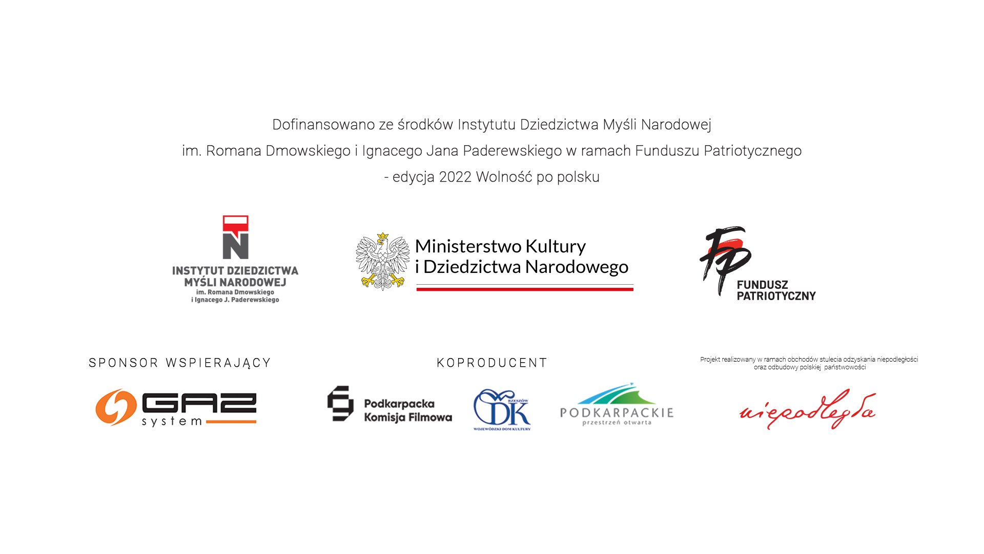 Pozyskaliśmy dofinansowanie ze środków Instytutu Dziedzictwa Myśli Narodowej im. Romana Dmowskiego i Ignacego Jana Paderewskiego w ramach Funduszu Patriotycznego. Film uzyskał również wsparcie finansowe Województwa Podkarpackiego w ramach Podkarpackiego Regionalnego Funduszu Filmowego jako koproducent filmu. Sponsorem wspierającym jest GAZ-SYSTEM. Pozostali sponsorzy: Miasto Jasło, Gmina Jasło, Powiat Jasielski, Miasto Rzeszów, Miasto Krosno, Powiat Krośnieński, Gmina Ustrzyki Dolne, Gmina Tarnowiec, Miasto Gorlice oraz firmy: ORLEN OIL Sp. z o. o., ORLEN POŁUDNIE S. A., P. W. Wenta Sp. z o. o. we Frysztaku, Raf Ekologia Sp. z o. o. w Jedliczu, Krośnieński Holding Komunalny Sp. z o. o. w Krośnie, Przedsiębiorstwo Robót Drogowo-Mostowych Sp. z o. o. w Jaśle oraz Sanok Rubber Company.