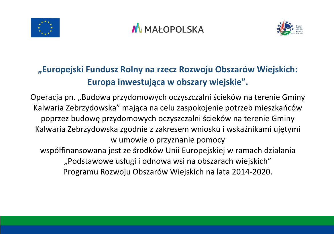 Tytuł projektu: Budowa przydomowych oczyszczalni ścieków na terenie Gminy Kalwaria Zebrzydowska