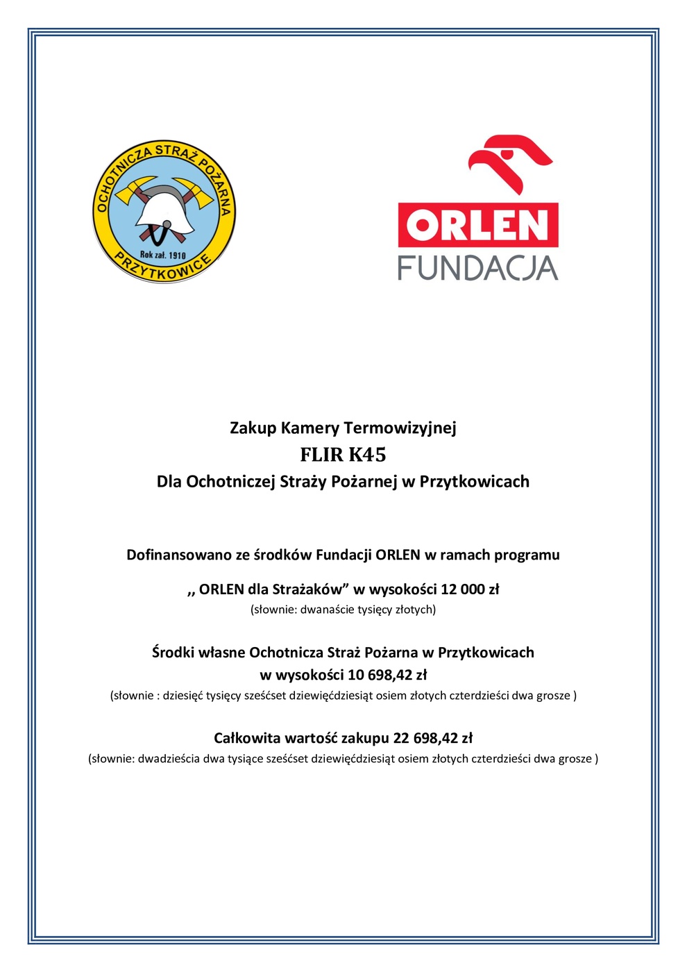 Dzięki wsparciu finansowemu Fundacji ORLEN Ochotnicza Straż Pożarna w Przytkowicach nabyła kamerę termowizyjną FLIR K45.