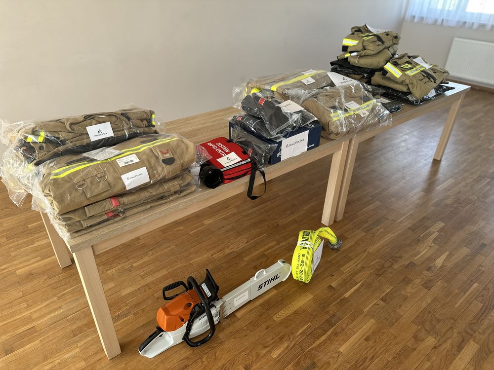 Nowe wyposażenie, które trafiło do strażaków, to m.in. ubrania specjalne, rękawice bojowe, piły ratownicze oraz buty strażackie. Dzięki temu strażacy będą jeszcze lepiej przygotowani do szybkiego i skutecznego reagowania w sytuacjach zagrożenia. To kolejne działanie, które poprawi bezpieczeństwo mieszkańców gminy, a także wesprze ochotników w ich codziennej, pełnej poświęcenia służbie.