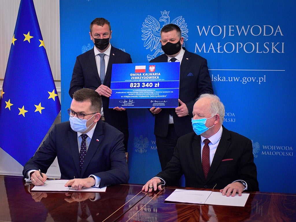 Uroczyste podpisanie umowy miało miejsce w Małopolskim Urzędzie Wojewódzkim w Krakowie. Burmistrzowi Kalwarii towarzyszył radny Marcin Zadora, który reprezentował posła Filipa Kaczyńskiego. Bezpośrednio po wizycie u wojewody przekazano plac budowy pod remont kortów tenisowych. W przekazaniu placu budowy uczestniczyli także: Radny Rady Miejskiej Łukasz Dragan, Dyrektor CKSiT Andrzej Burdek, Prezes MKS Kalwarianka Piotr Zadora, Przewodniczący Zarządu Osiedla nr 1 Tadeusz Stela, przedstawiciele wykonawcy, nadzoru inwestorskiego oraz pracownicy urzędu.