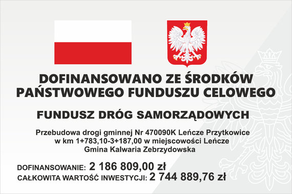 Tytuł: Przebudowa drogi gminnej nr 470090K Leńcze Przytkowice w km 1+783,10 - 3+187,00 w miejscowości Leńcze, gmina Kalwaria Zebrzydowska