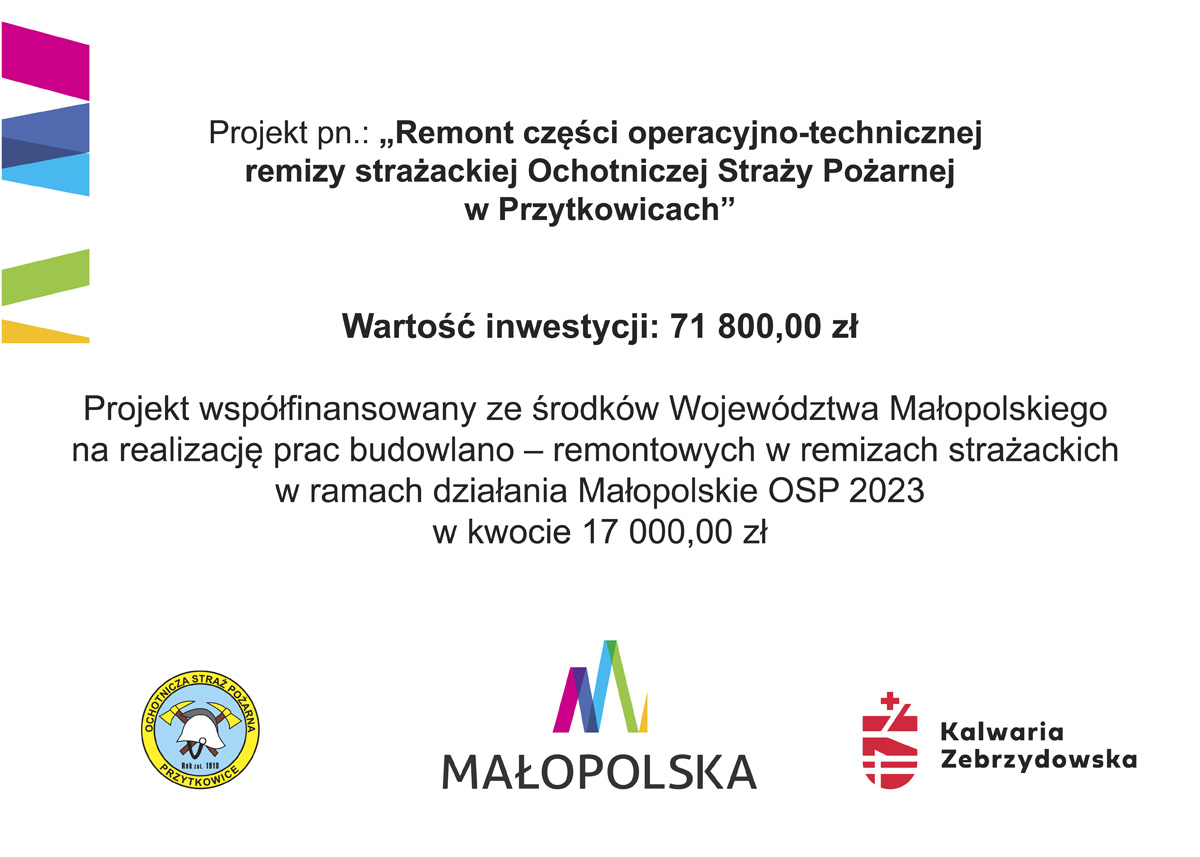 Remont części operacyjno-technicznej remizy strażackiej Ochotniczej Straży Pożarnej w Przytkowicach.