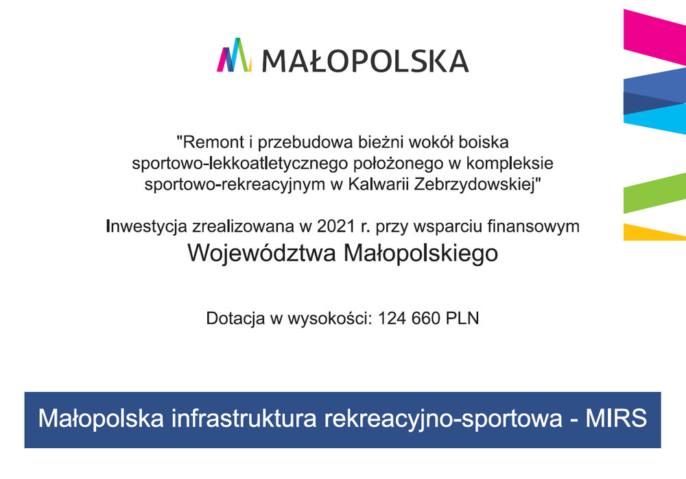 Tytuł projektu: Remont i przebudowa bieżni wokół boiska sportowo-lekkoatletycznego położonego w kompleksie sportowo-rekreacyjnym w Kalwarii Zebrzydowskiej