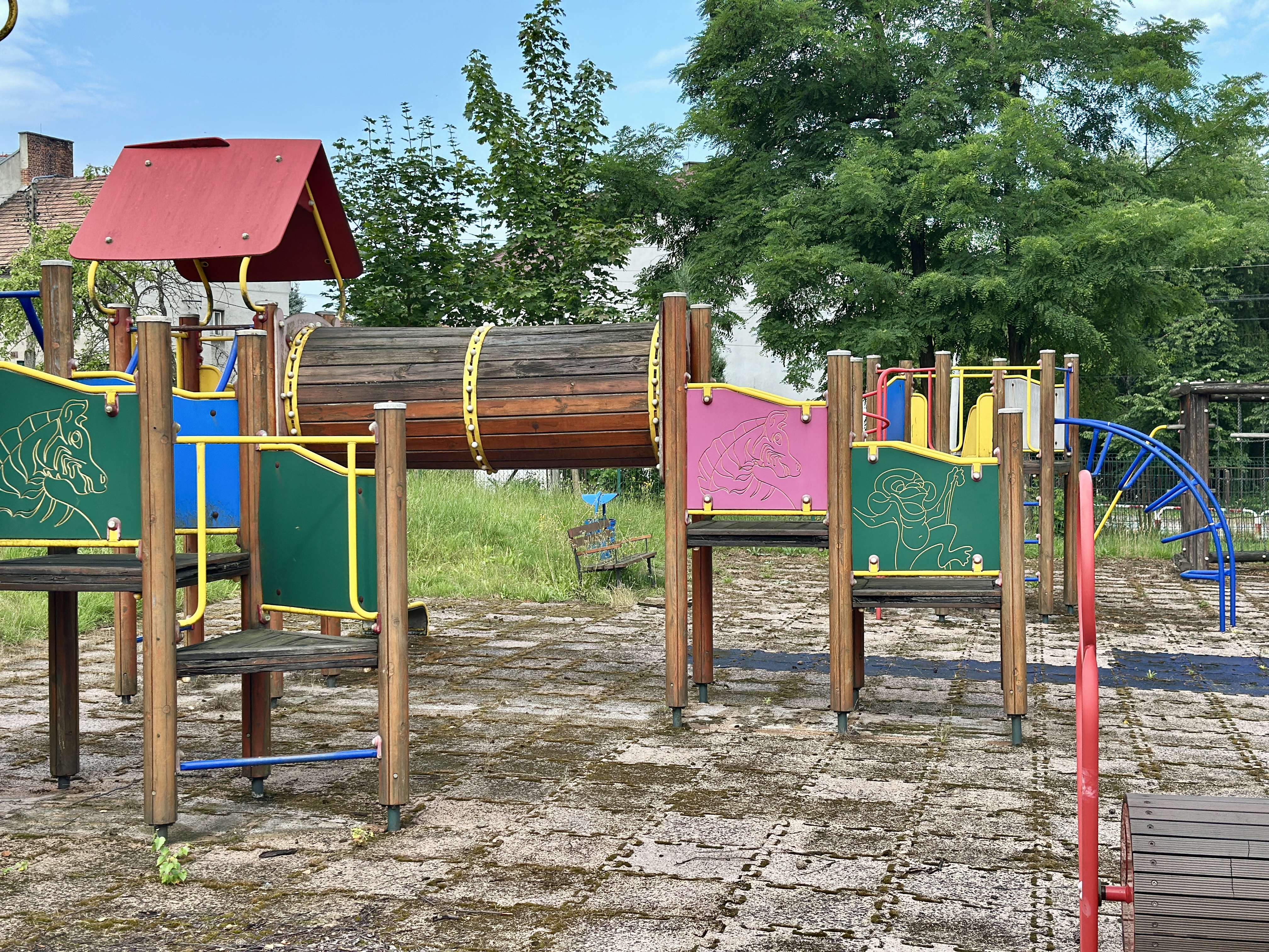- montaż nowoczesnych i atrakcyjnych urządzeń rekreacyjnych, takich jak: górka wspinaczkowa, zestawy ze zjeżdżalniami, linarium, karuzele, huśtawki, domki, bujaki, piaskownica oraz równoważnia.
