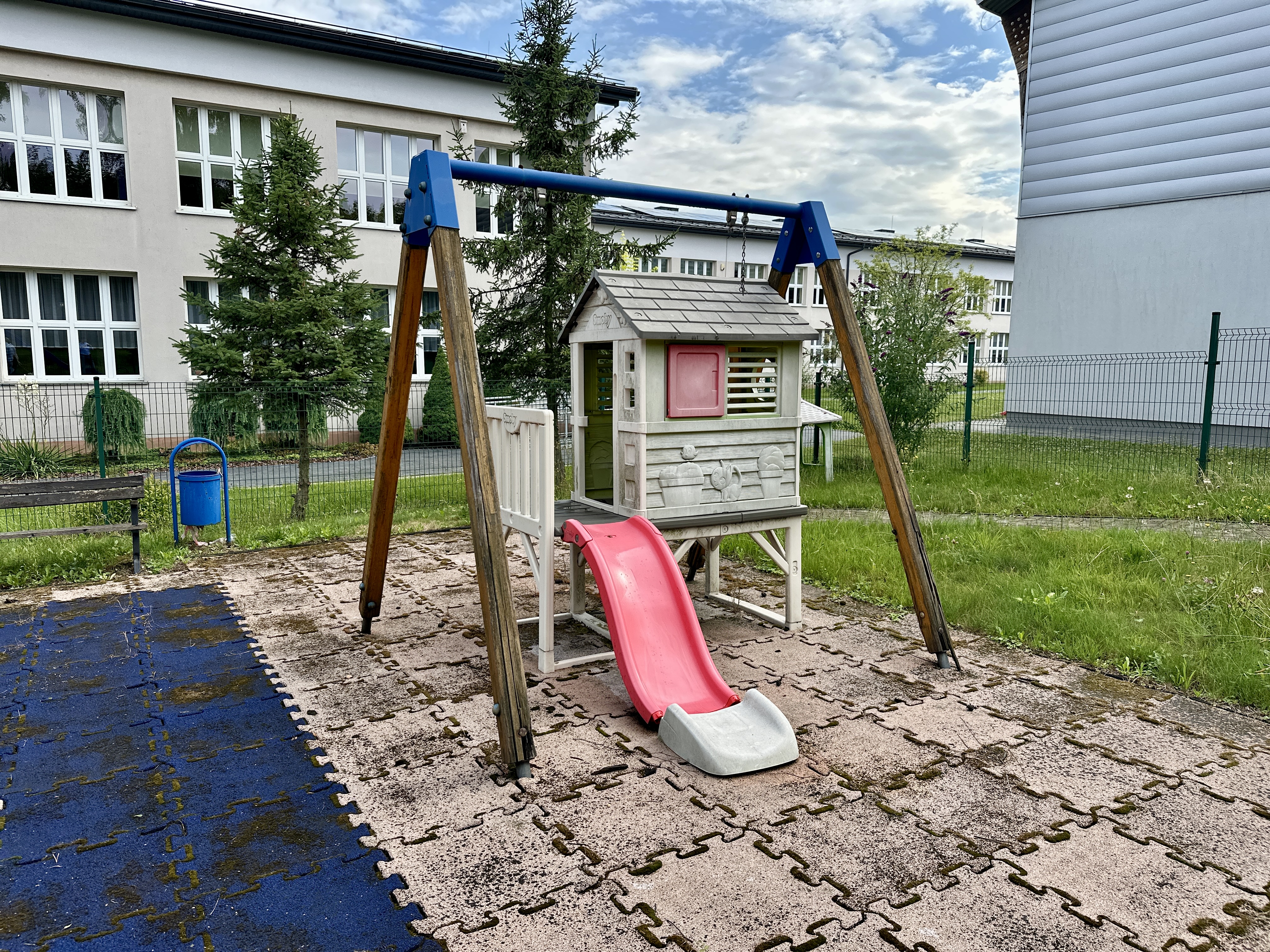 - strefa zielona – zjeżdżalnia terenowa, huśtawki oraz równoważnia.