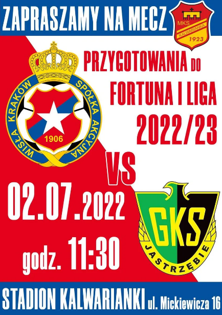 Po czteroletniej przerwie Wisła Kraków zawita do Kalwarii Zebrzydowskiej na stadion Kalwarianki. To już niejako tradycja i po raz siódmy w ostatnich latach Wisła Kraków odwiedzi stadion w Kalwarii Zebrzydowskiej aby rozegrać przedsezonowy sparing, tym razem w ramach przygotowań do sezonu w I lidze. Już w najbliższą sobotę 2 lipca o godzinie 11:30 Wisła Kraków na stadionie Kalwarianki rozegra mecz z GKS Jastrzębie.