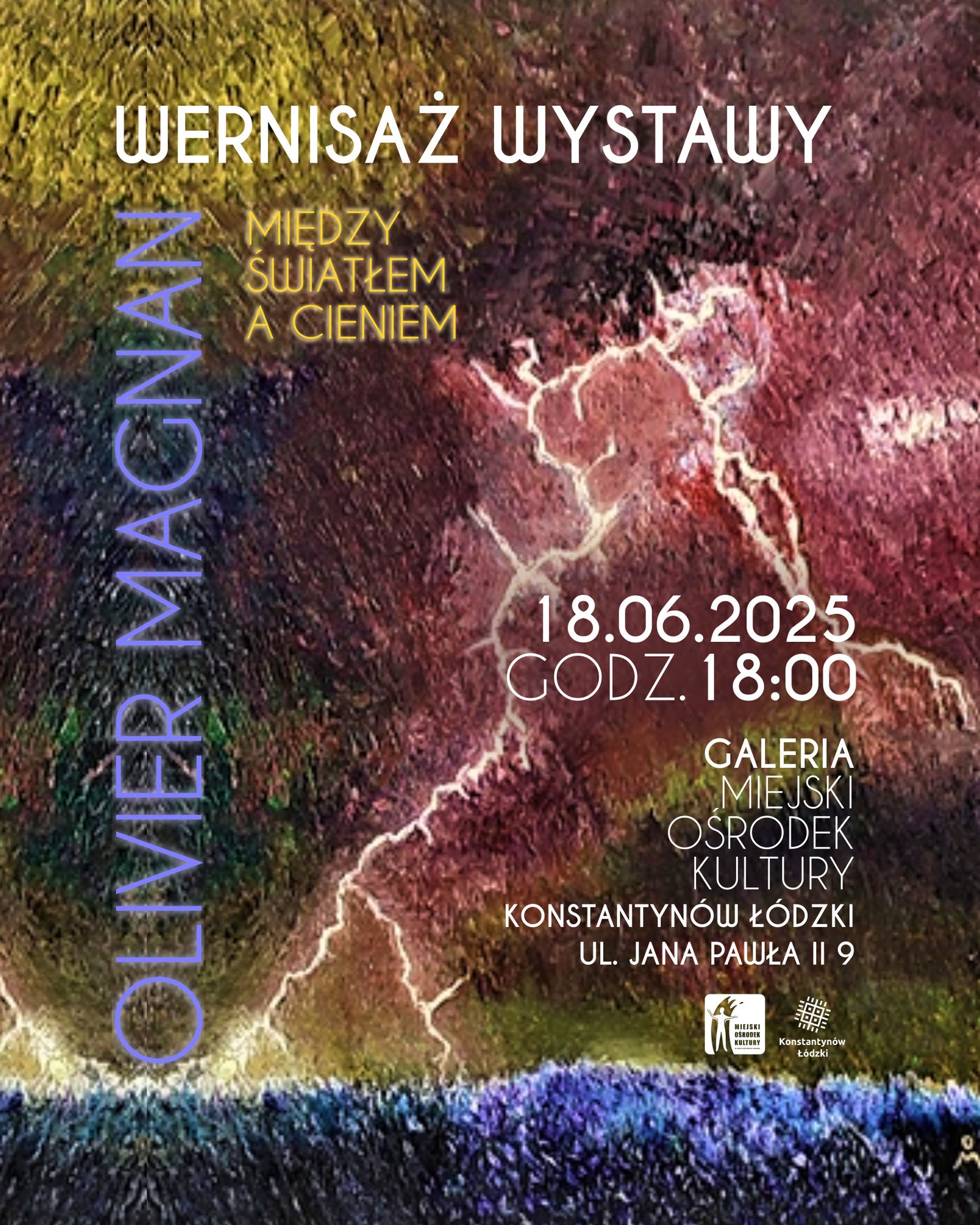 Olivier Magnan od kilku lat mieszka w Konstantynowie Łódzkim. Tutaj szuka inspiracji, a autorską wizję natury i świata przelewa na płótno. Niedawno miał wystawę we Francji w Vic–sur–Seille. Teraz jego prace zobaczymy w naszej Galerii Miejskiego Ośrodka Kultury przy ulicy Jana Pawła II — zapraszamy na wernisaż 18 czerwca.