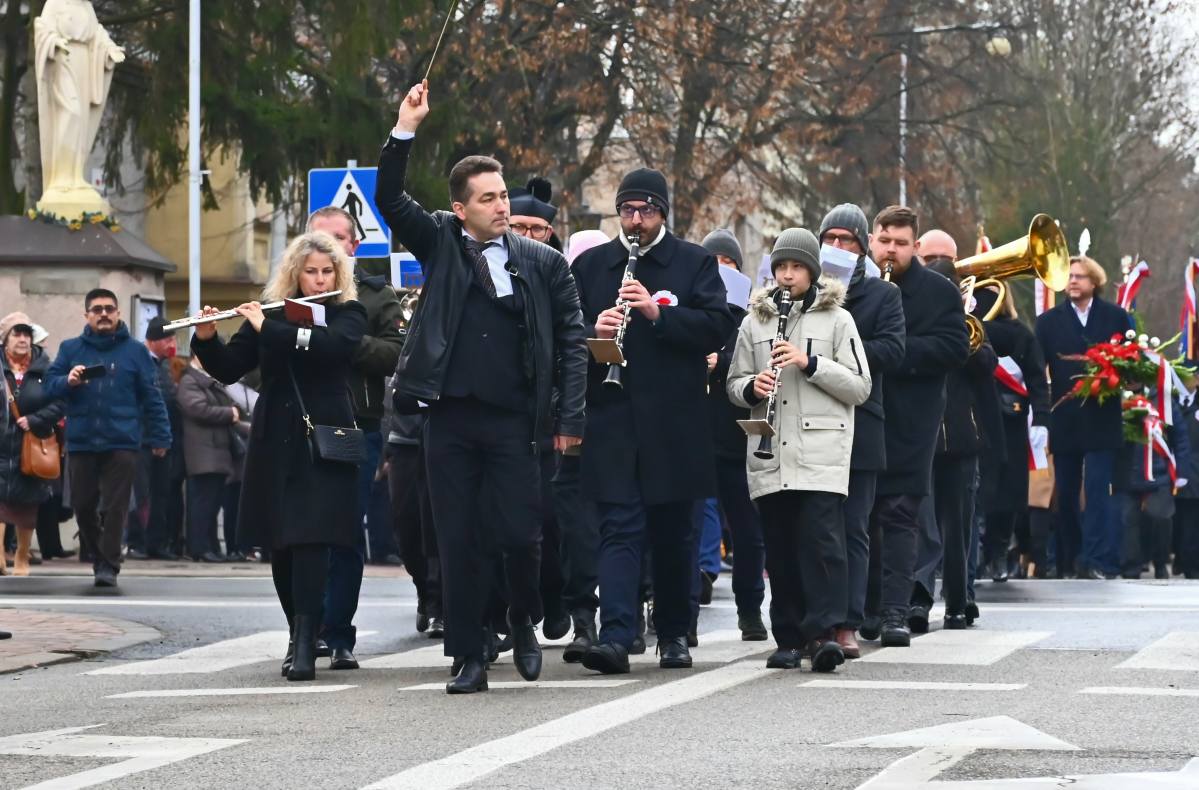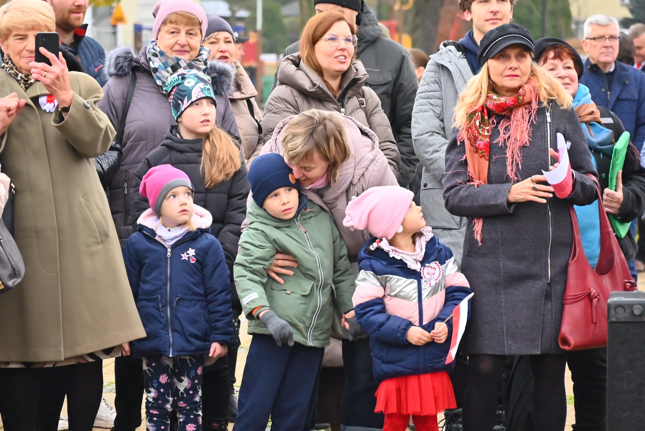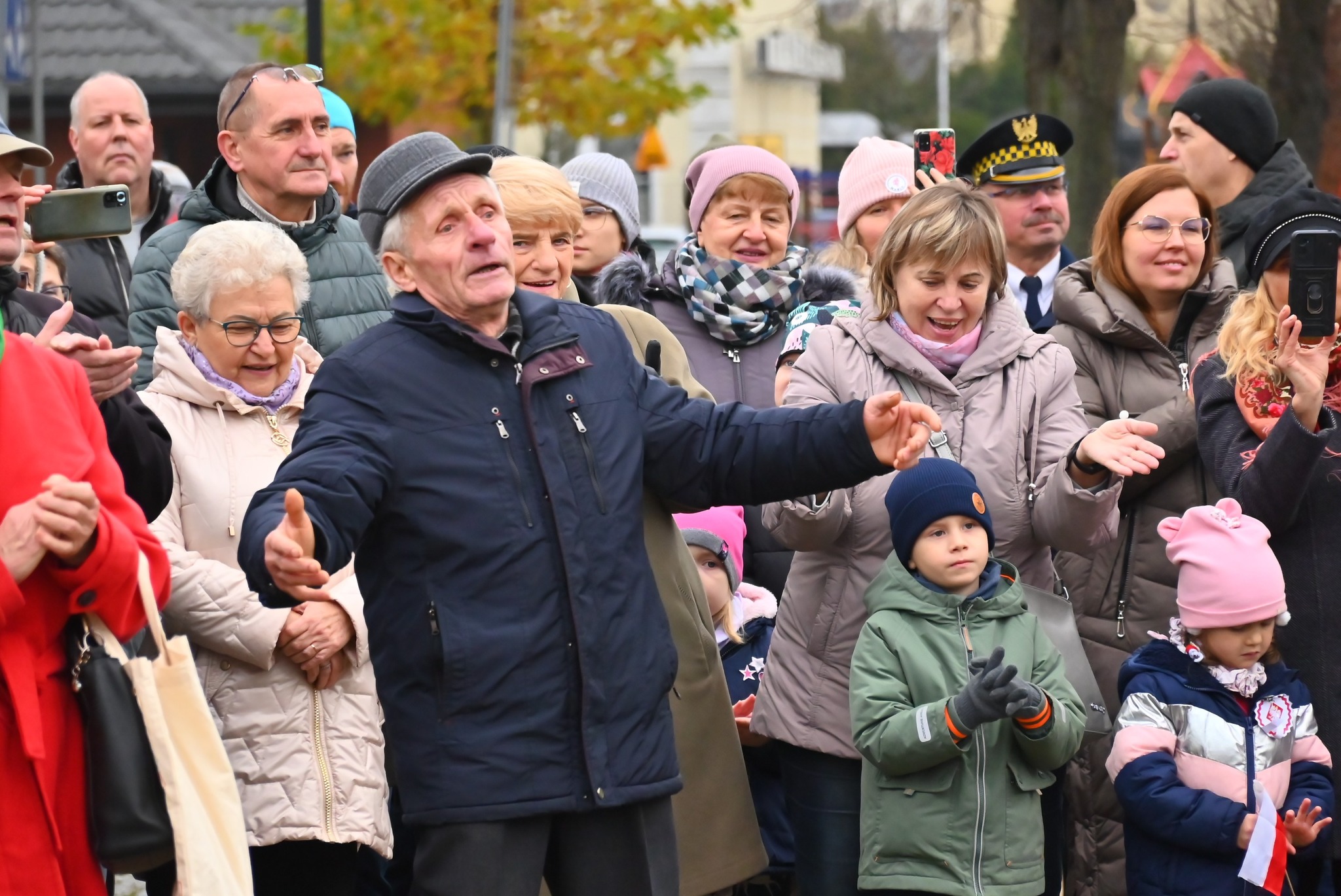 Mieszkańcy i goście otrzymali okolicznościowe kotyliony, które wykonują osoby z niepełnosprawnościami z Warsztatów Terapii Zajęciowej. Dzieciom radość sprawiły chorągiewki. Tradycyjnie obchody Narodowego Święta Niepodległości rozpoczęły się od mszy św. w kościele Narodzenia NMP, którą odprawił ksiądz dziekan Leszek Kaźmierczak. Po mszy poczty sztandarowe, mieszkańcy, goście i harcerze zostali poprowadzeni przez orkiestrę dętą na plac Tadeusza Kościuszki. Przed pomnikiem delegacje złożyły kwiaty. Pomagali im harcerze z naszego hufca. To był wyjątkowy dzień dla nas Polaków, bo upamiętnia odzyskanie przez Polskę niepodległości.