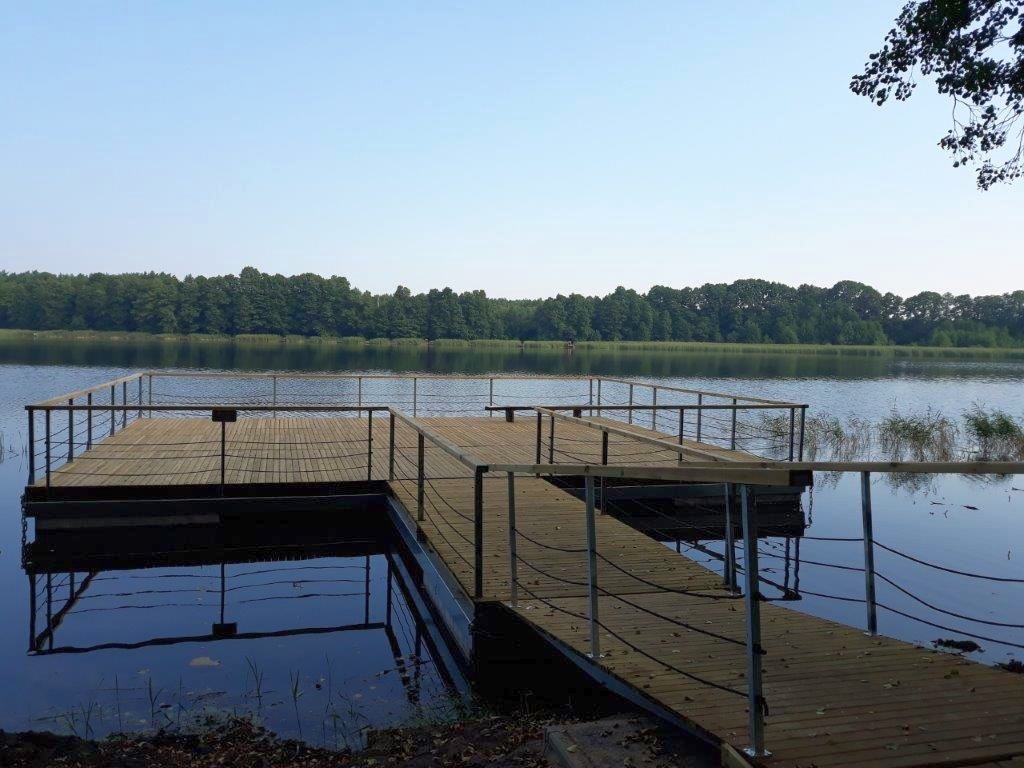 Dobiegły końca prace związane z budową sceny pływającej na jeziorze Królewskim, realizowanej w ramach działania „Realizacja lokalnych strategii rozwoju kierowanych przez społeczność” (w ramach celu: Propagowanie dobrostanu społecznego i dziedzictwa kulturowego na obszarach rybackich i obszarach akwakultury, w tym dziedzictwa kulturowego, rybołówstwa i akwakultury oraz morskiego dziedzictwa kulturowego obejmującego tworzenie, rozwój oraz wyposażenie infrastruktury turystycznej).