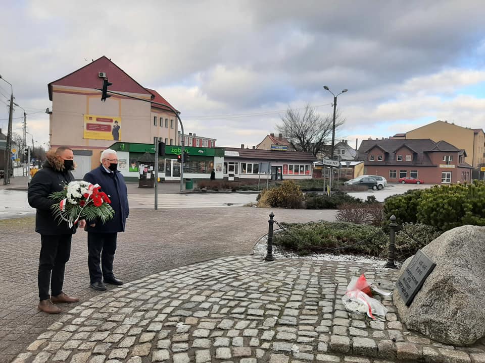 Przedstawiciele władz samorządowych Krzyża Wielkopolskiego, upamiętniając powrót naszych ziem do macierzy, złożyli kwiaty pod pamiątkowym obeliskiem.