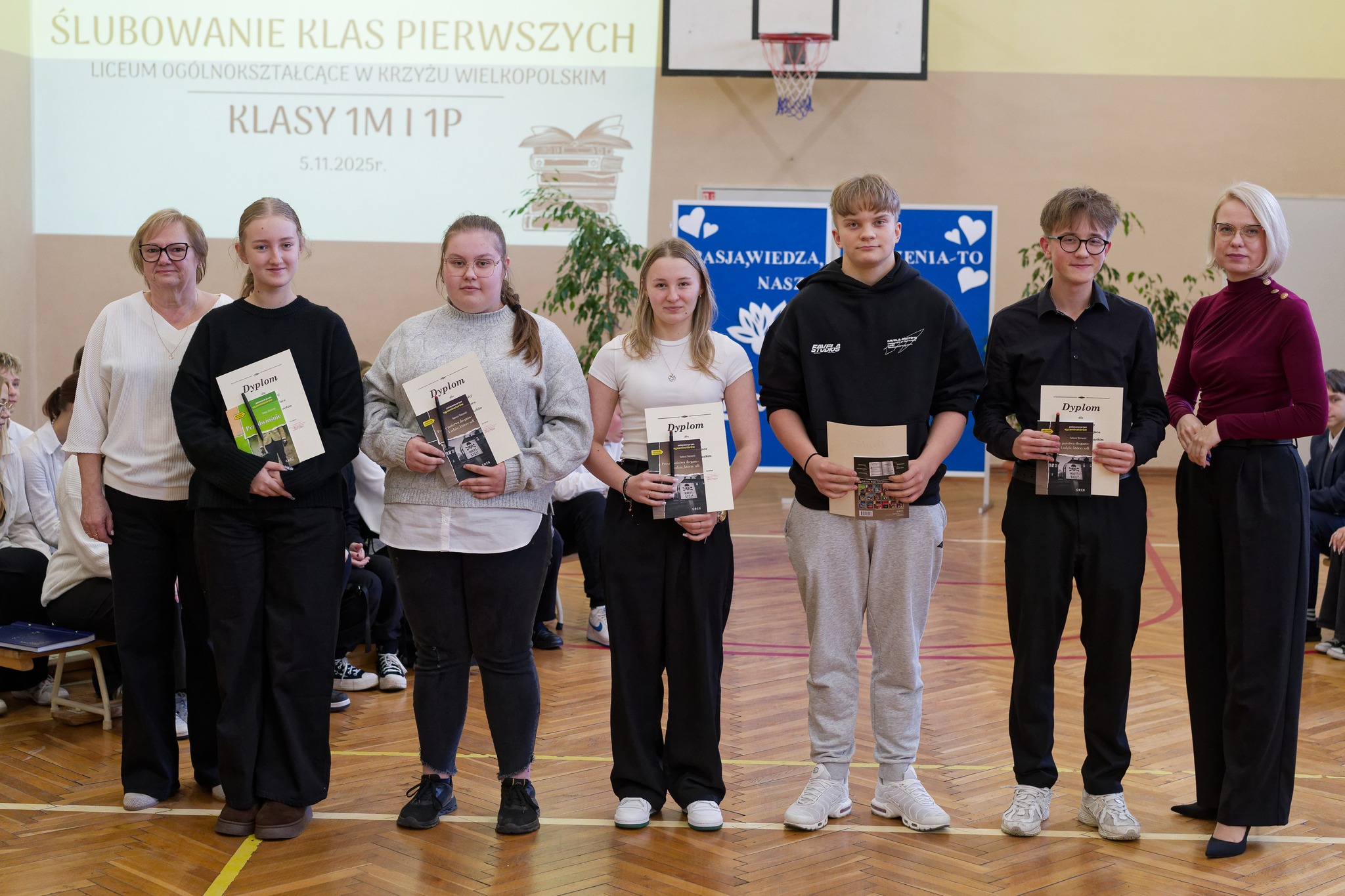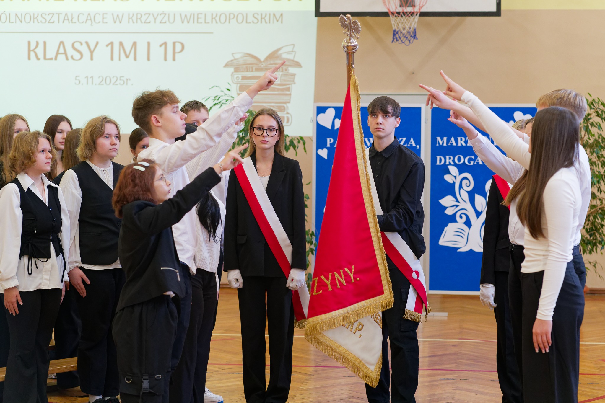 W Zespole Szkół Ogólnokształcących w Krzyżu Wielkopolskim odbyła się podniosła uroczystość ślubowania uczniów klasy I LO. W obecności grona pedagogicznego, rodziców oraz zaproszonych gości, pierwszoklasiści uroczyście złożyli przysięgę na sztandar szkoły, symbolicznie rozpoczynając nowy, ważny etap w swoim życiu.