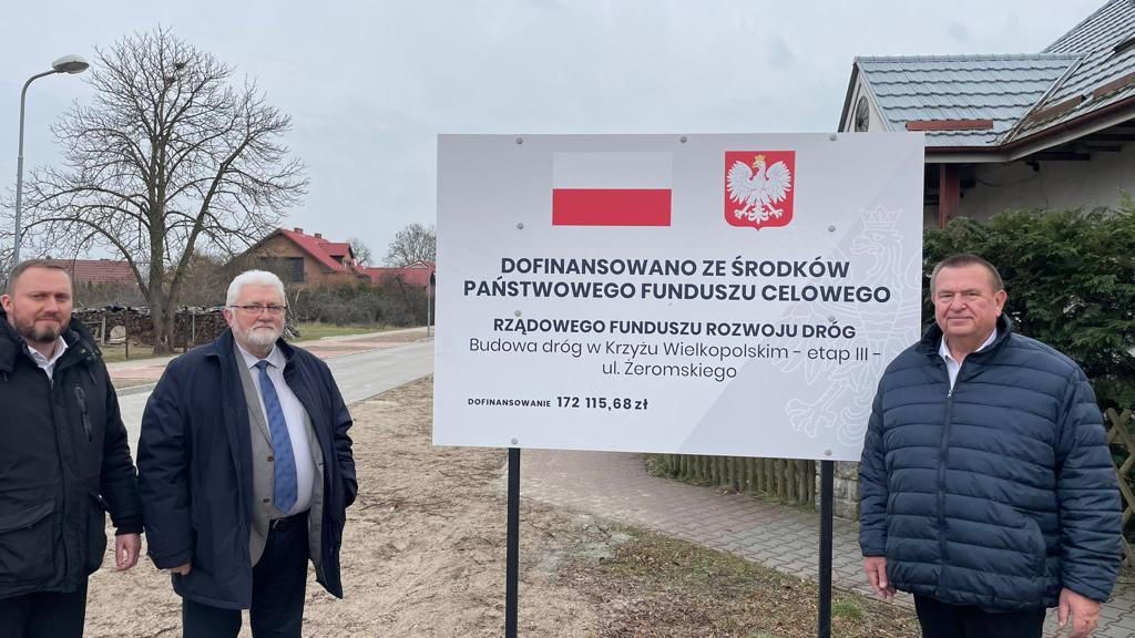 1. Ukończona inwestycja pn. "Budowa dróg w Krzyżu Wielkopolskim - etap III - ul. M. Konopnickiej, Fredry", której koszt wykonania robót budowlanych wyniósł 3 266 445,14 zł. Gmina na ten cel pozyskała dofinansowanie z Rządowego Funduszu Rozwoju Dróg w wysokości 1 771 750,26 zł. W ramach zadania wykonano 0,934 km jezdni, 0,811 km nowoprojektowanych chodników oraz zjazdy indywidualne do posesji z kostki betonowej. W ramach zadania wykonano również kolektor kanalizacji deszczowej z przykanalikami w ciągu ulic: Konopnickiej, Fredry, Żeromskiego, Baczyńskiego, Norwida oraz Wyspiańskiego.