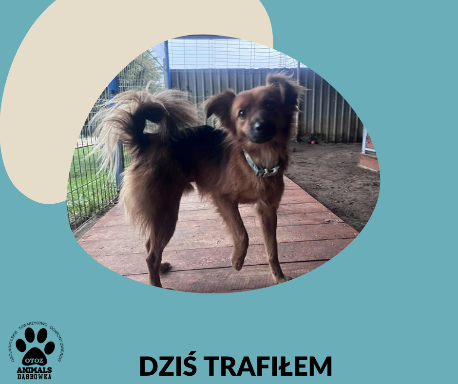 Do schroniska OTOZ Animals w Dąbrówce k. Wejherowa trafił 10 listopada 2025 roku. Został znaleziony na terenie Gminy Łęczyce w miejscowości Łówcz Górny.