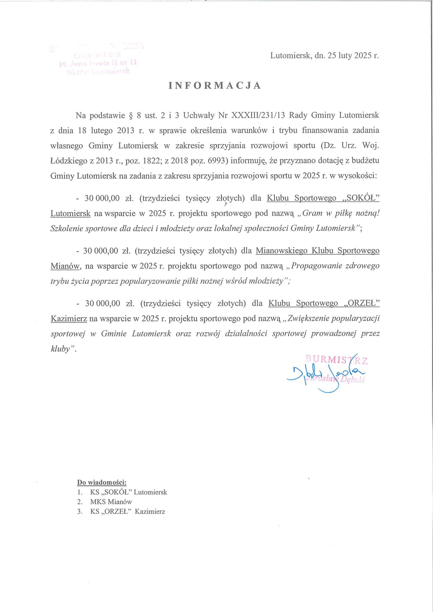 📢 Dobra wiadomość dla miłośników sportu! Gmina Lutomiersk przyznała dotacje na rozwój lokalnych klubów sportowych w 2025 roku. Dzięki temu wsparciu młodzież oraz mieszkańcy będą mogli rozwijać swoje umiejętności, aktywnie spędzać czas i promować zdrowy styl życia.