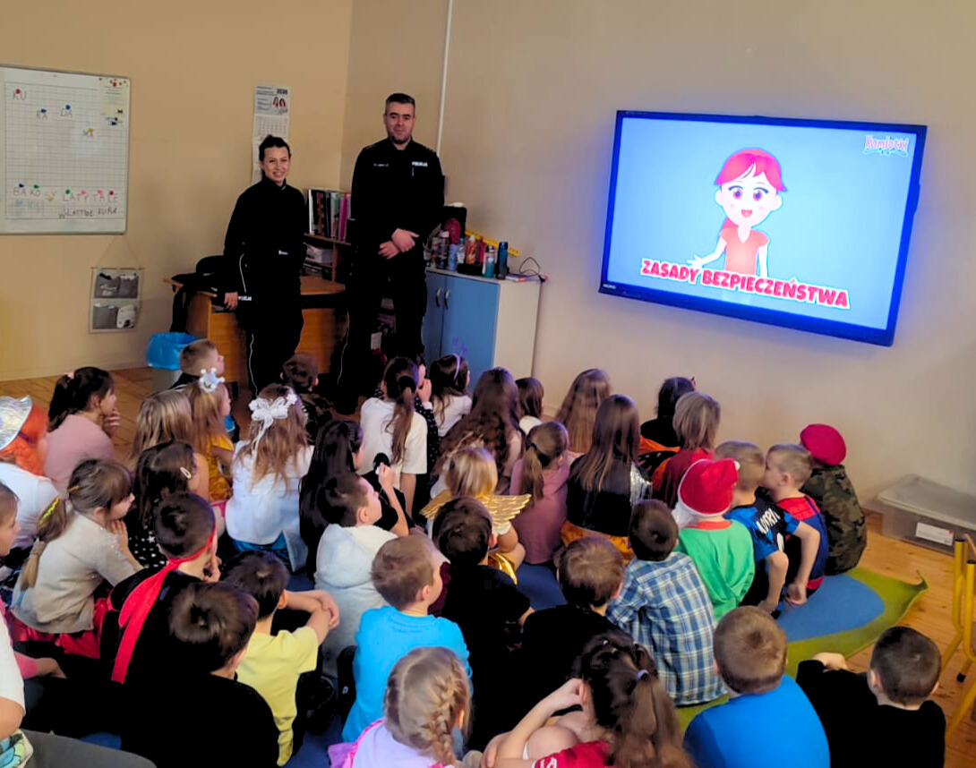 Policjanci przypomnieli najmłodszym zasady bezpiecznego wypoczynku zimowego ❄️🛷, poruszania się po drogach 🚦🚸 oraz zachowania ostrożności podczas zabaw ⛸️⚠️
