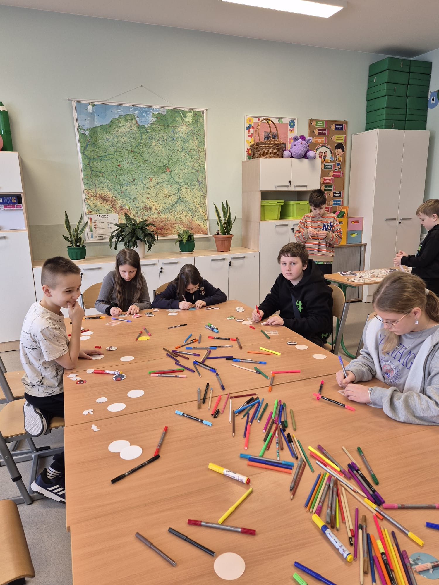 Każdego dnia dzieci uczestniczyły w grach i zabawach ruchowych z zachowaniem zasad bezpieczeństwa oraz fair play. Program obejmował także gry stolikowe, zagadki muzyczne oraz łamigłówki rozwijające logiczne myślenie i kreatywność. Podczas warsztatów plastycznych uczniowie samodzielnie wykonywali przypinki z postaciami bajkowymi oraz ozdabiali torby.