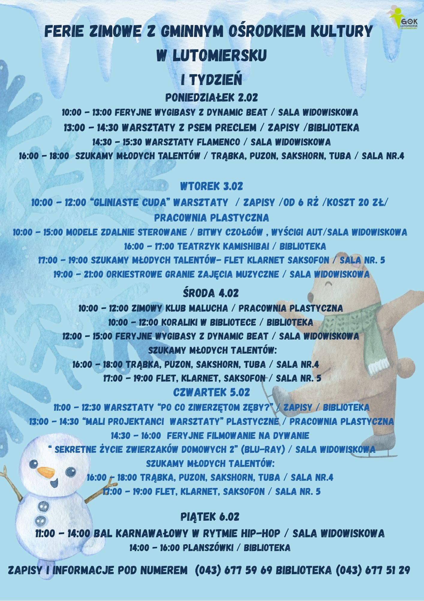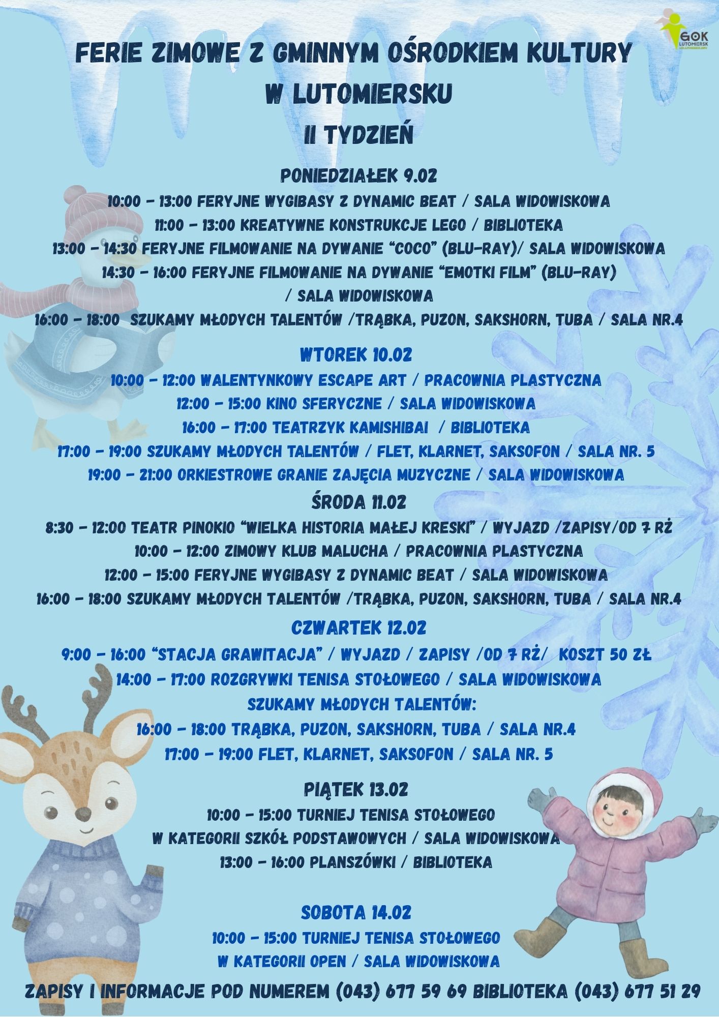 FERIE ZIMOWE Z GOK W LUTOMIERSKU – ZAPRASZAMY DZIECI I MŁODZIEŻ!