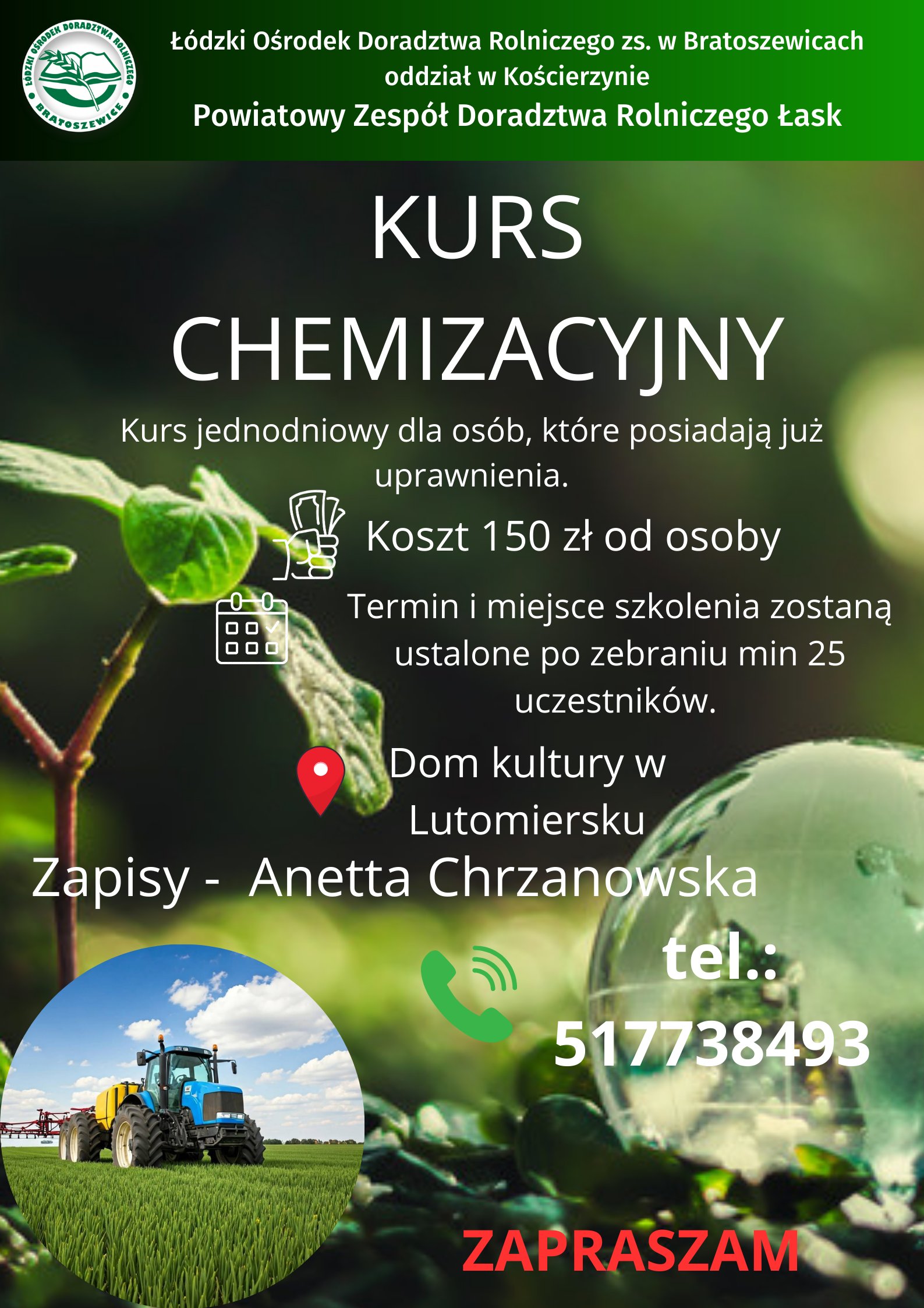 Serdecznie zapraszamy wszystkich zainteresowanych do zapisów i udziału w szkoleniu 🌱🚜
