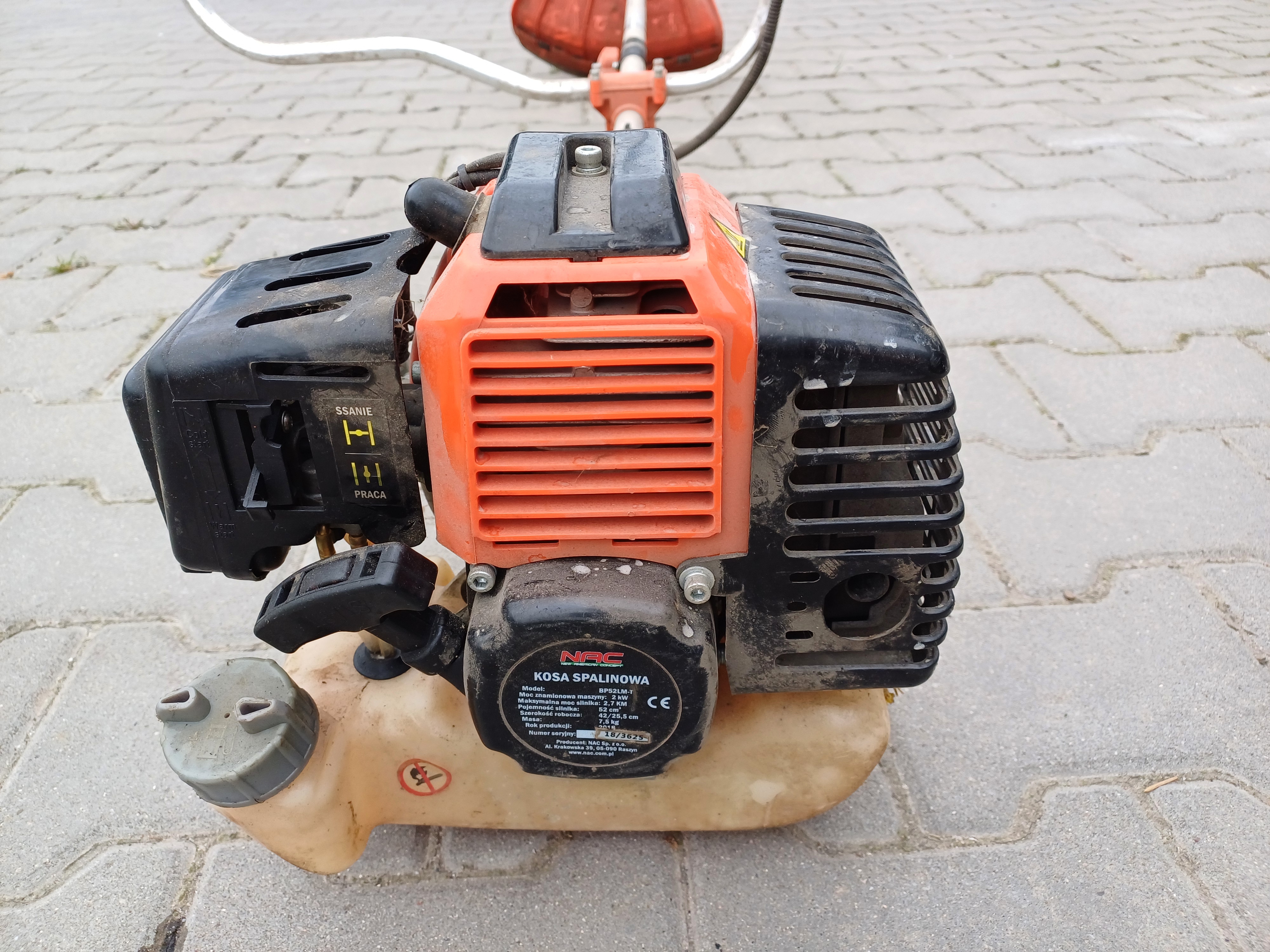 - Kosa spalinowa NAC model BP52LM-T, moc 2kw, rok produkcji 2018;