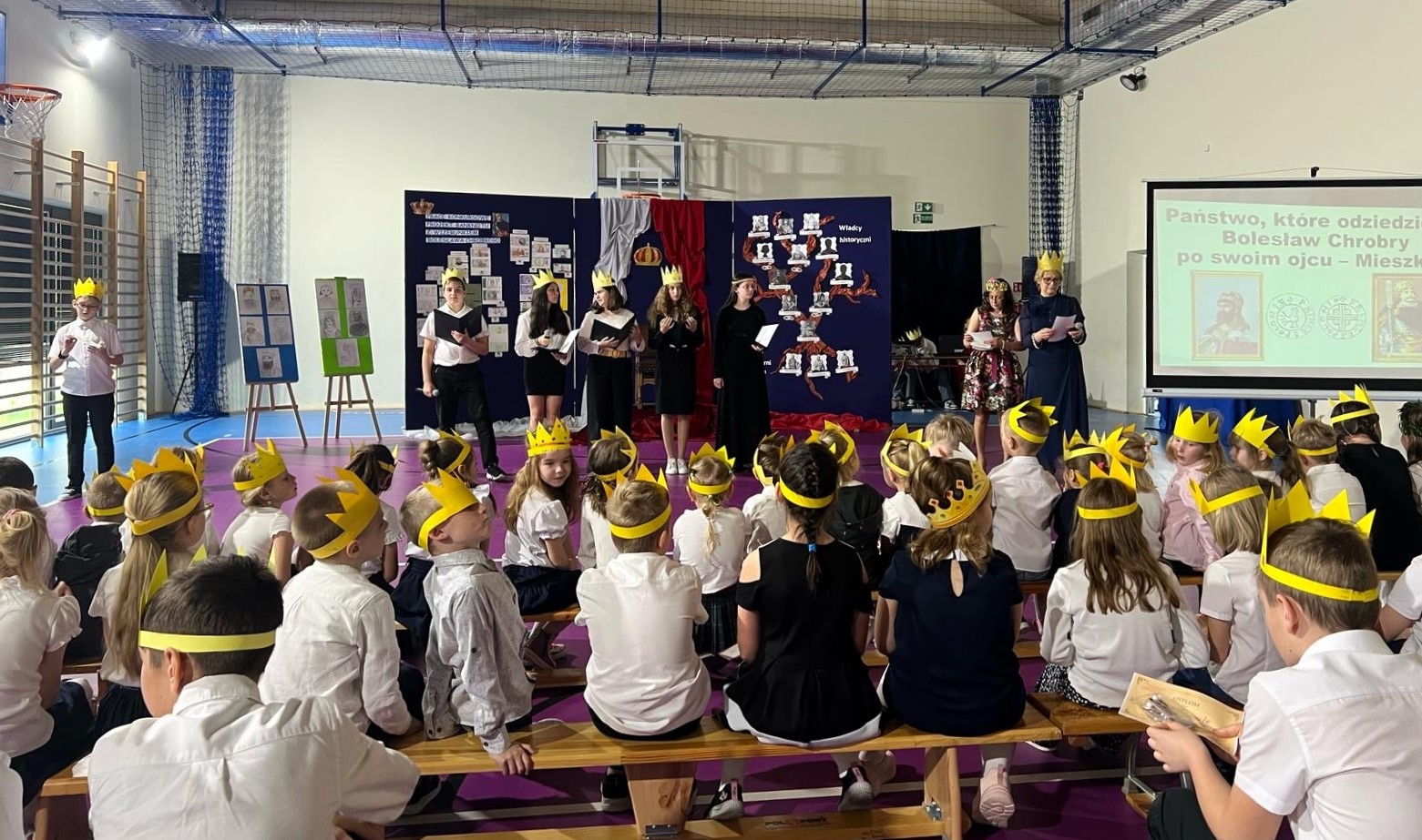 Dzięki filmikom, prezentacjom, scenkom, piosenkom i tańcom uczniowie w ciekawy i kreatywny sposób przybliżyli historię początków państwa polskiego oraz drogę Bolesława Chrobrego do koronacji.