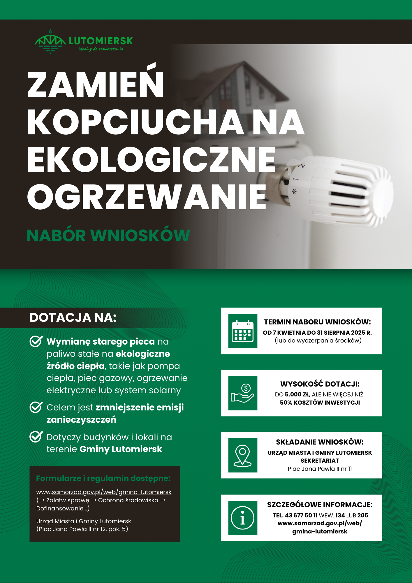 #Lutomiersk #Dotacja #EkologiczneOgrzewanie #WymianaPieca #CzystePowietrze #ZielonaGmina #DlaZdrowia