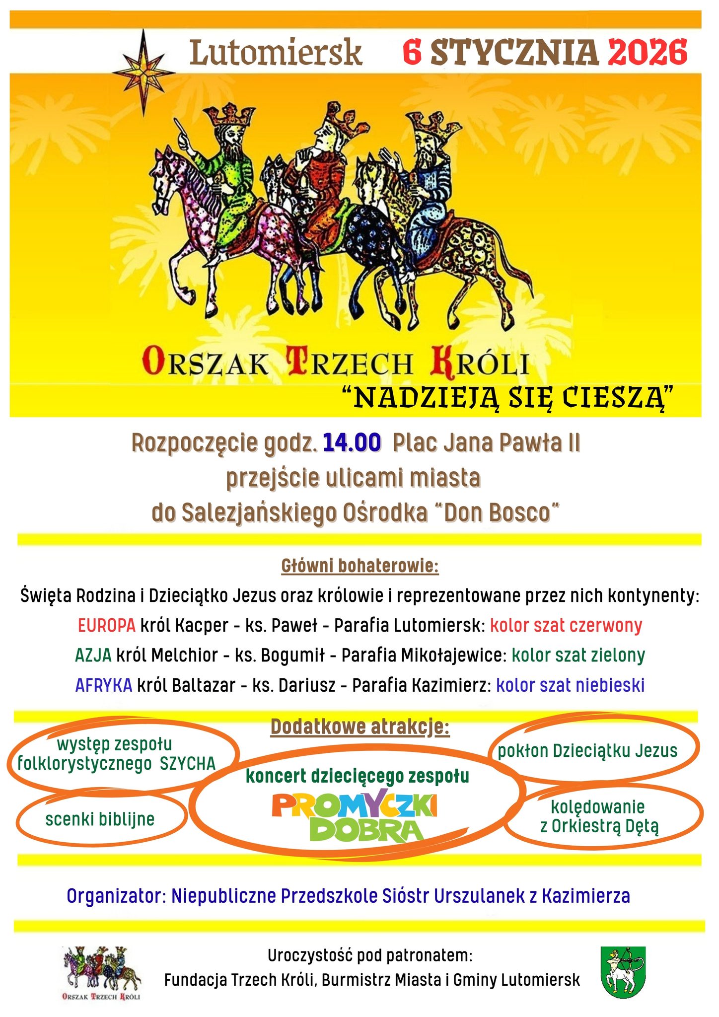 Zapraszamy mieszkańców Gminy Lutomiersk na Orszak Trzech Króli!