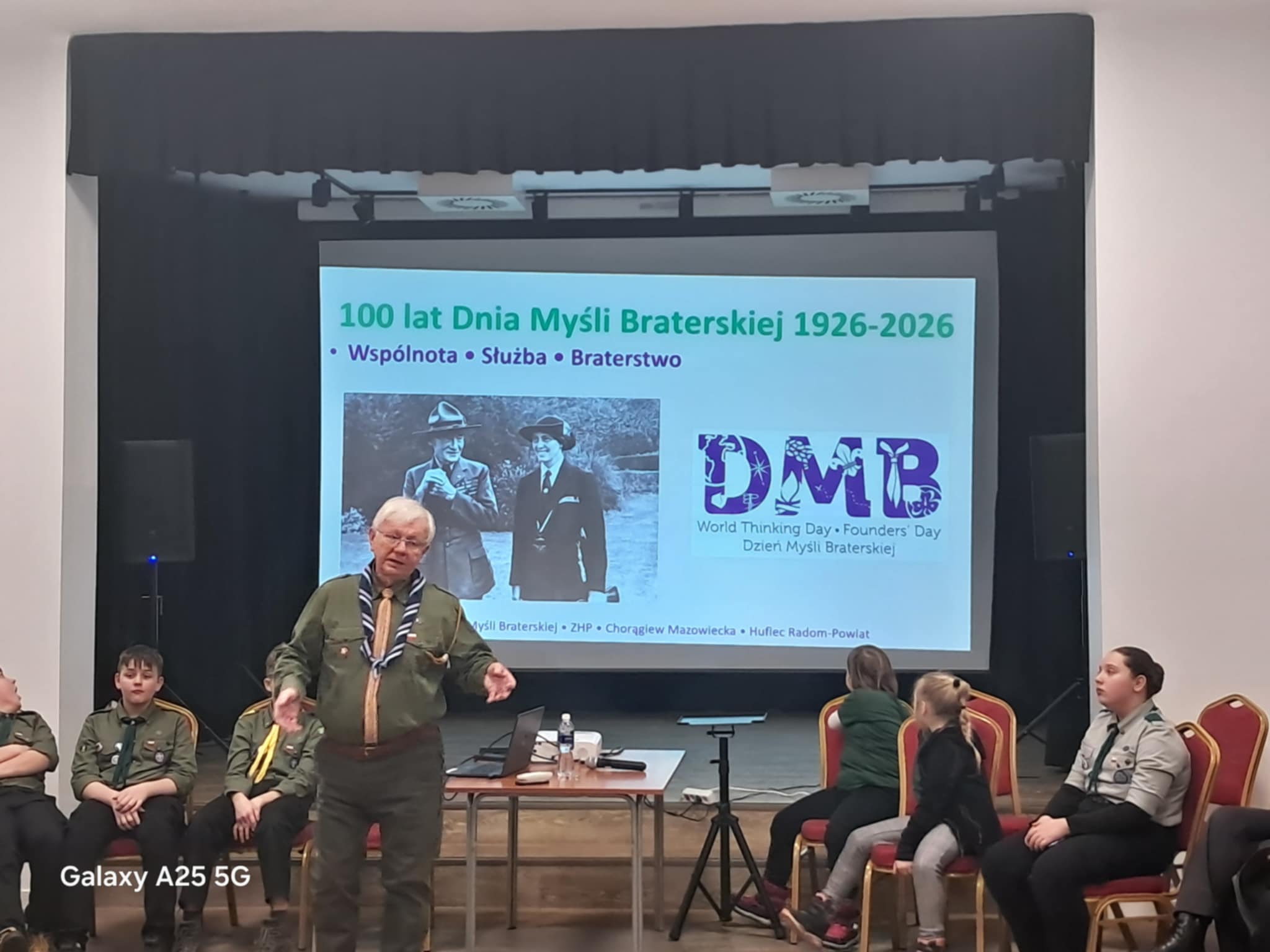 Szczególnym momentem spotkania było wystąpienie pana Cezarego Nowka z Lokalnej Grupy Działania Razem dla Radomki, który w interesujący sposób przybliżył zebranym historię harcerstwa – od jego początków aż po współczesność. Prelekcja stała się inspirującą lekcją patriotyzmu i przypomnieniem, jak ważną rolę harcerstwo odegrało w dziejach Polski.