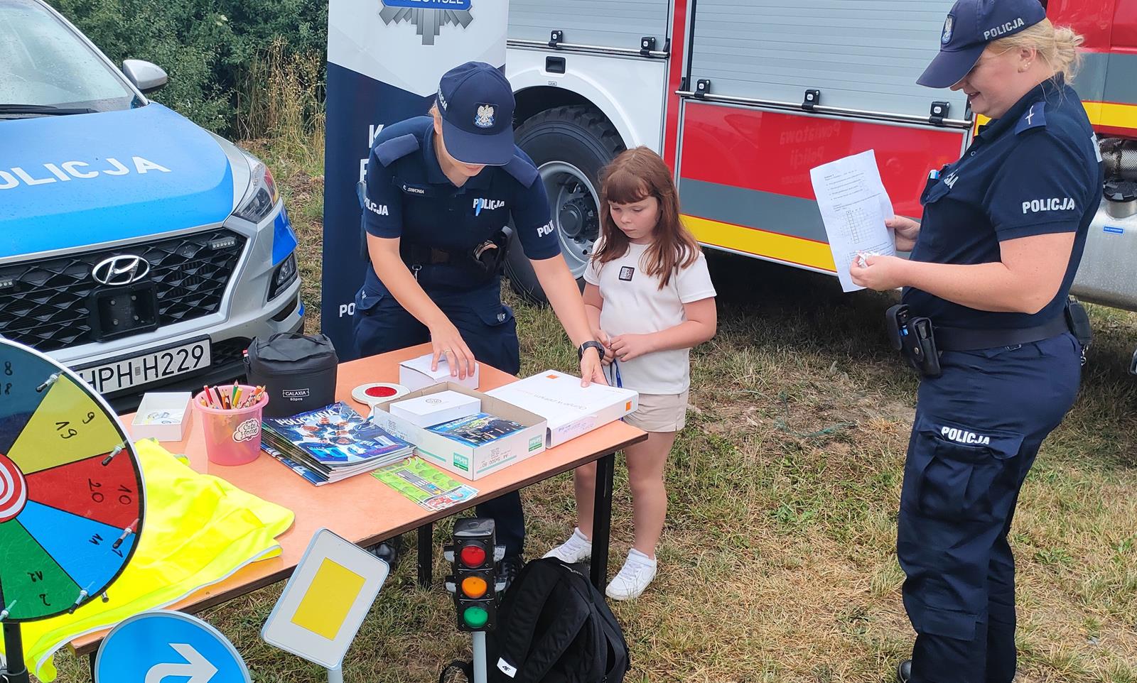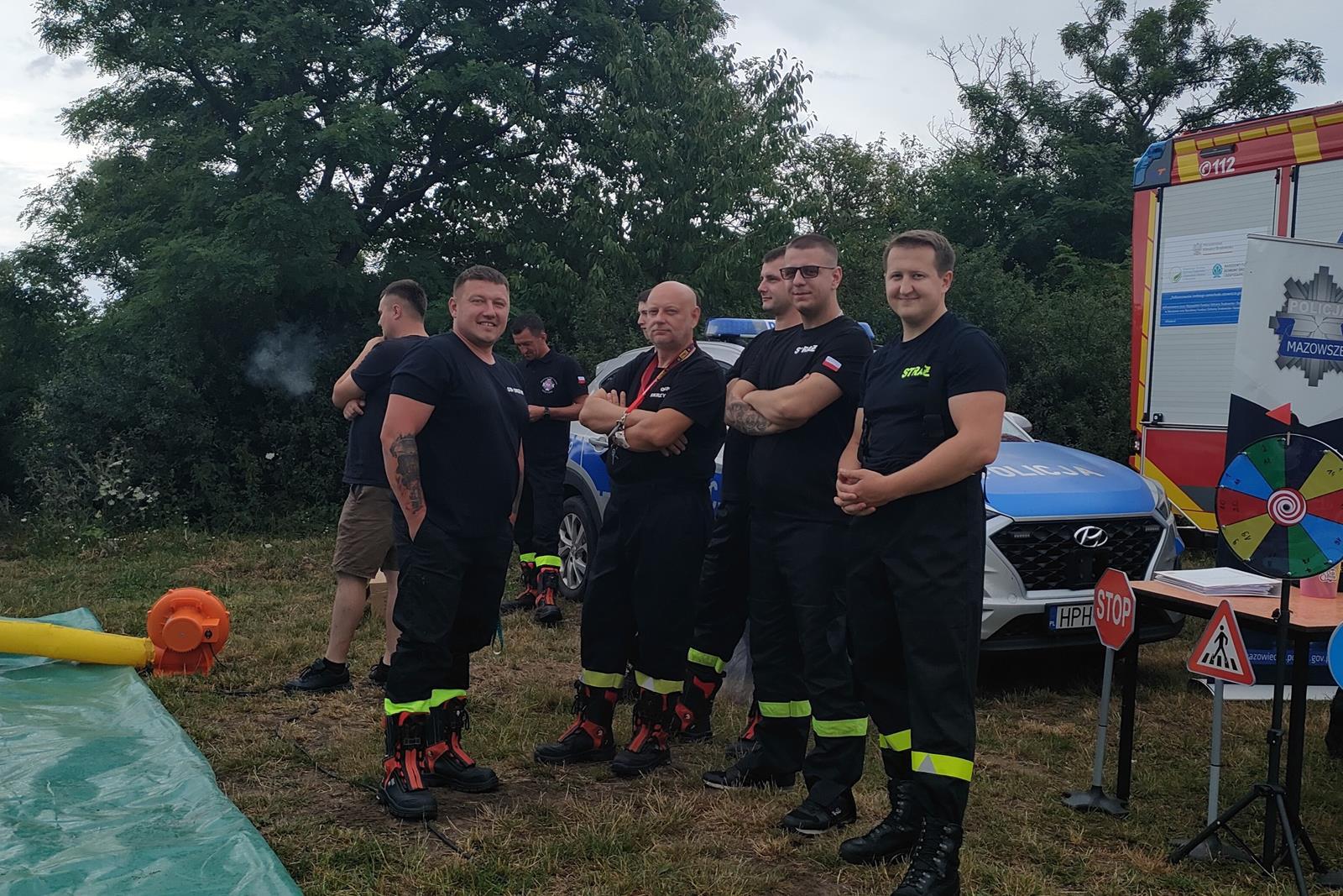 Na jarmarku obecne były również stoiska policji i straży pożarnej. Funkcjonariusze udzielali porad dotyczących bezpieczeństwa oraz prezentowali sprzęt, co było atrakcją zarówno dla dorosłych, jak i dla dzieci.