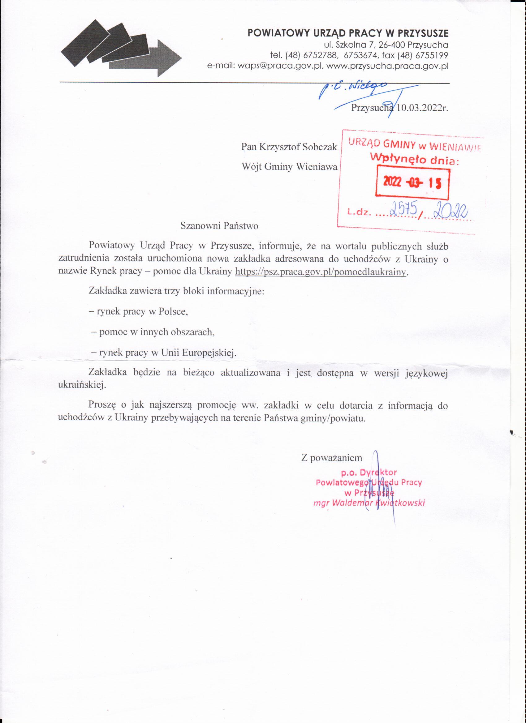 Komunikat Powiatowego Urzędu Pracy w Przysusze