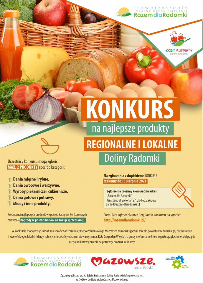 W konkursie mogą wziąć udział: mieszkańcy obszaru wiejskiego Południowego Mazowsza zamieszkujący na terenie powiatów radomskiego, przysuskiego i zwoleńskiego: lokalni liderzy, rolnicy, mieszkańcy obszaru, stowarzyszenia, Koła Gospodyń Wiejskich, grupy nieformalne które wypełnią zgłoszenie, dołączą do niego unikatowy przepis na potrawę/ produkt kulinarny. Kliknij aby uzyskać więcej informacji.
