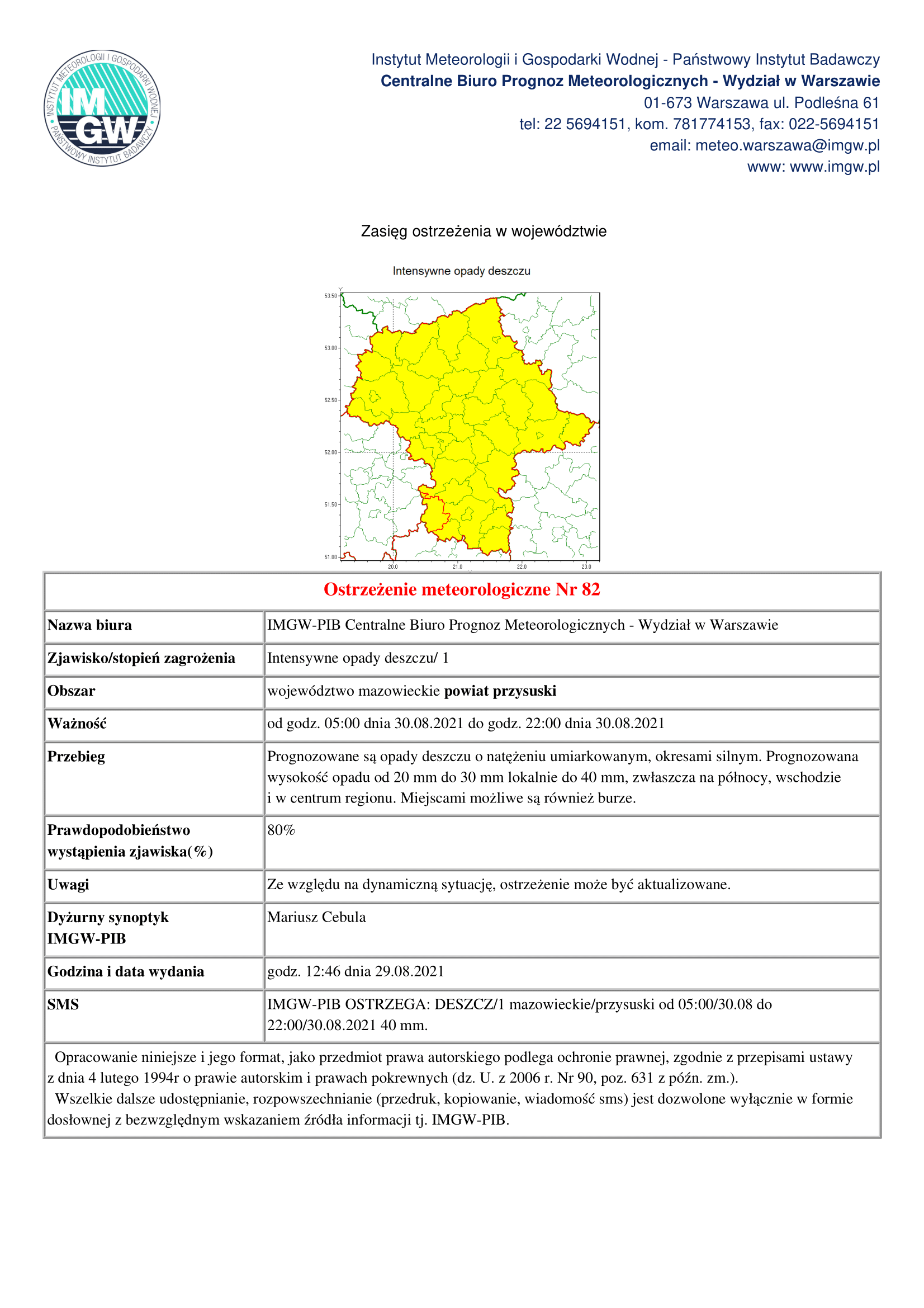 Ostrzeżenie meteorologiczne Nr 82