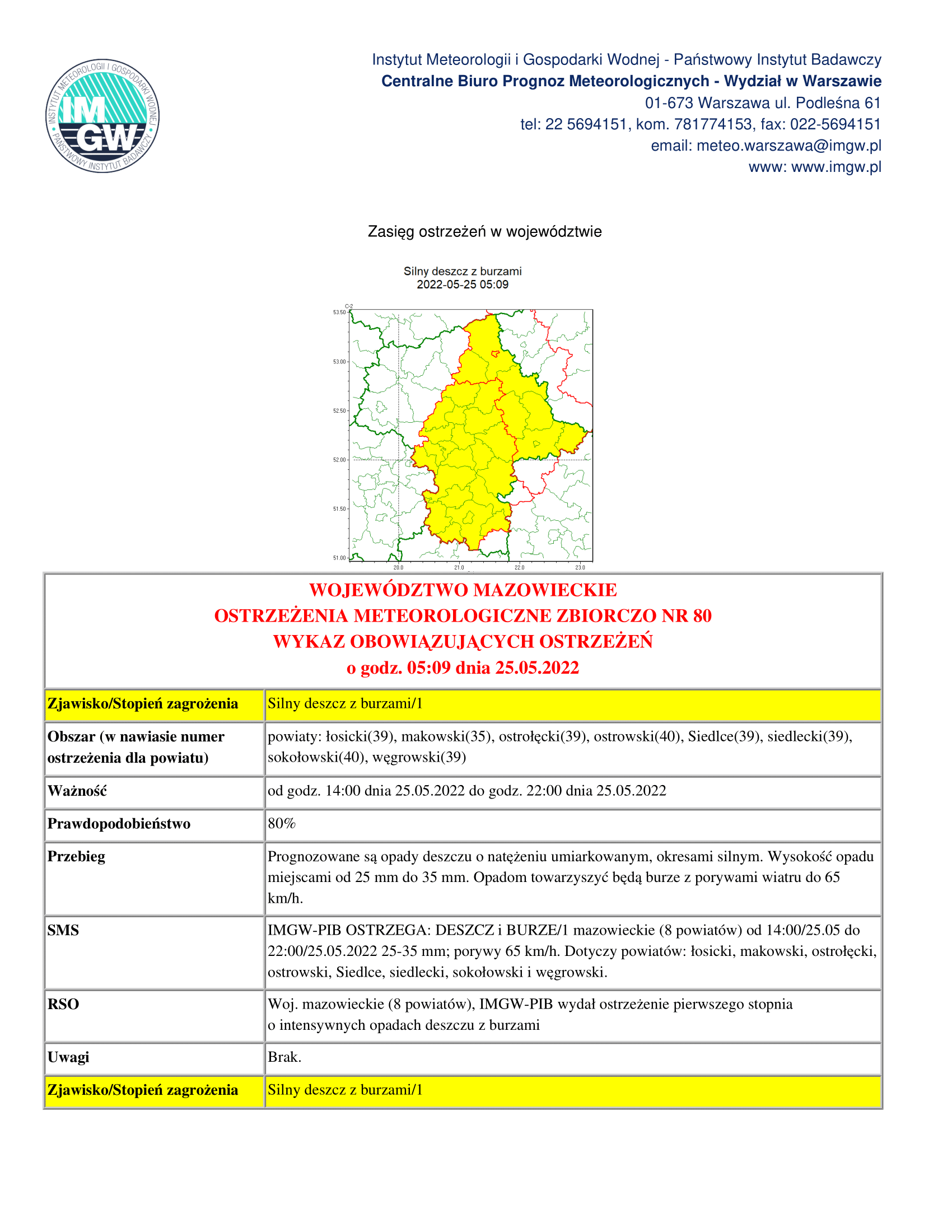 Ostrzeżenie meteorologiczne zbiorczo nr 80