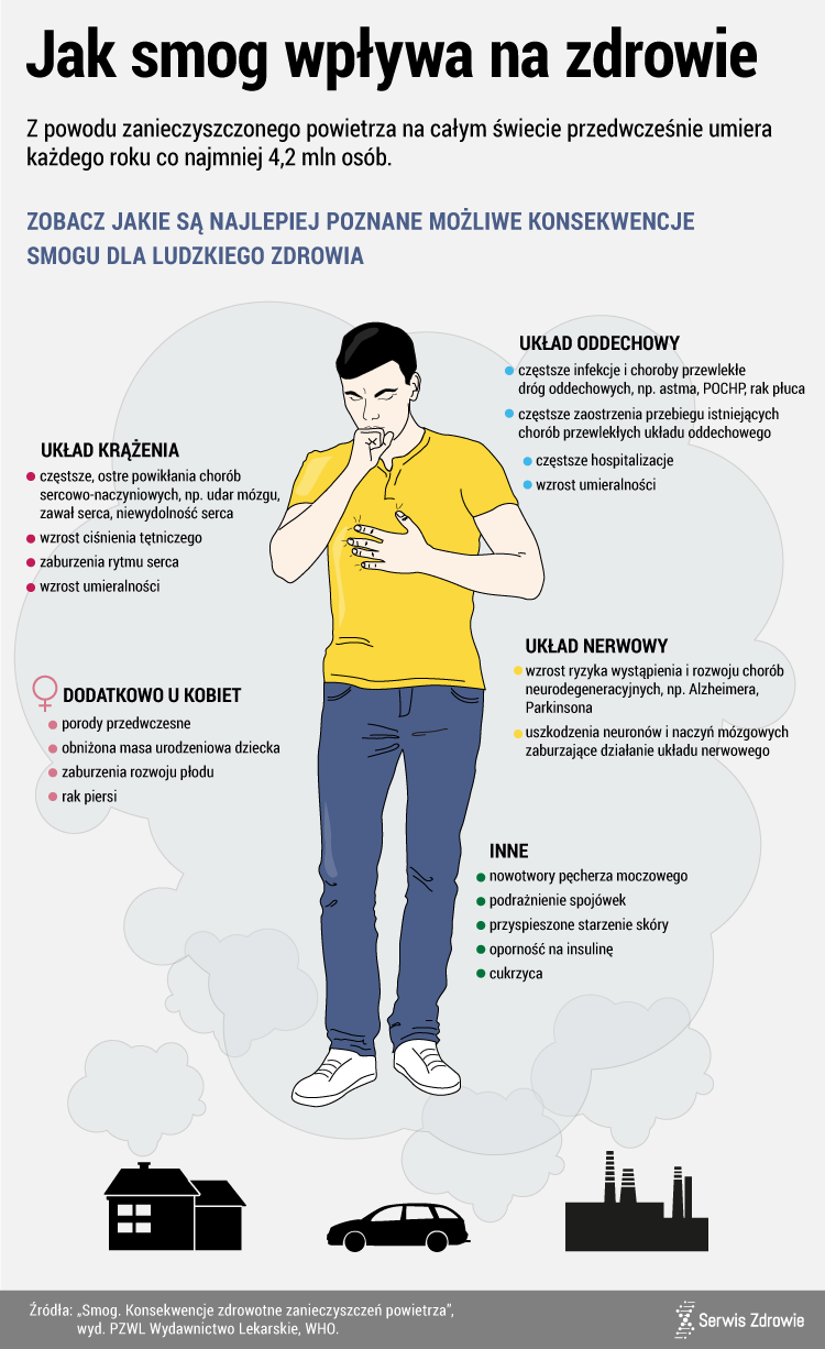 Jak smog działa na nasz organizm prezentuje poniższa grafika.