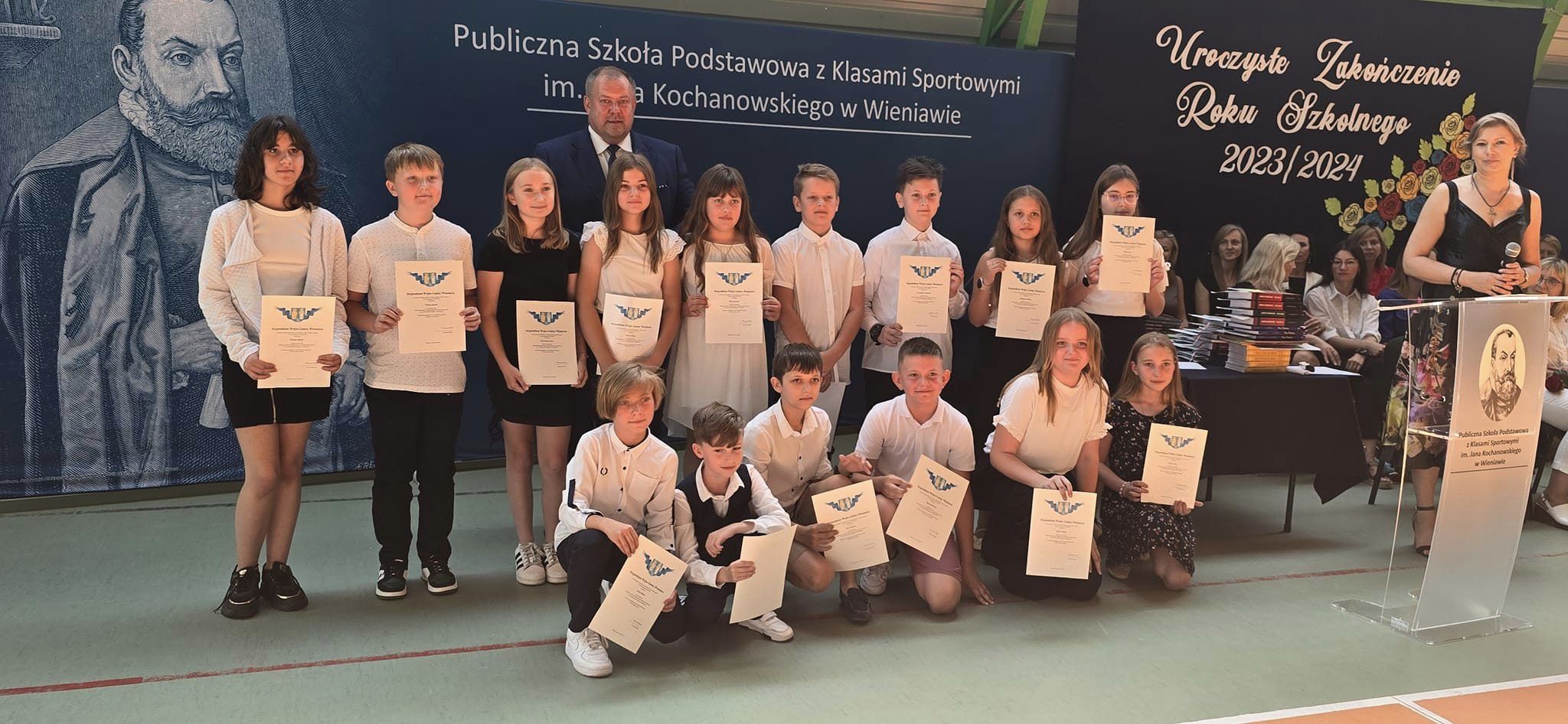 W piątek, 21 czerwca, w Publicznej Szkole Podstawowej w Wieniawie odbyło się uroczyste zakończenie roku szkolnego 2023/2024. Był to dzień pełen emocji, wzruszeń i podsumowań, który zgromadził uczniów, rodziców oraz nauczycieli na szkolnym dziedzińcu, pięknie udekorowanym z tej okazji.