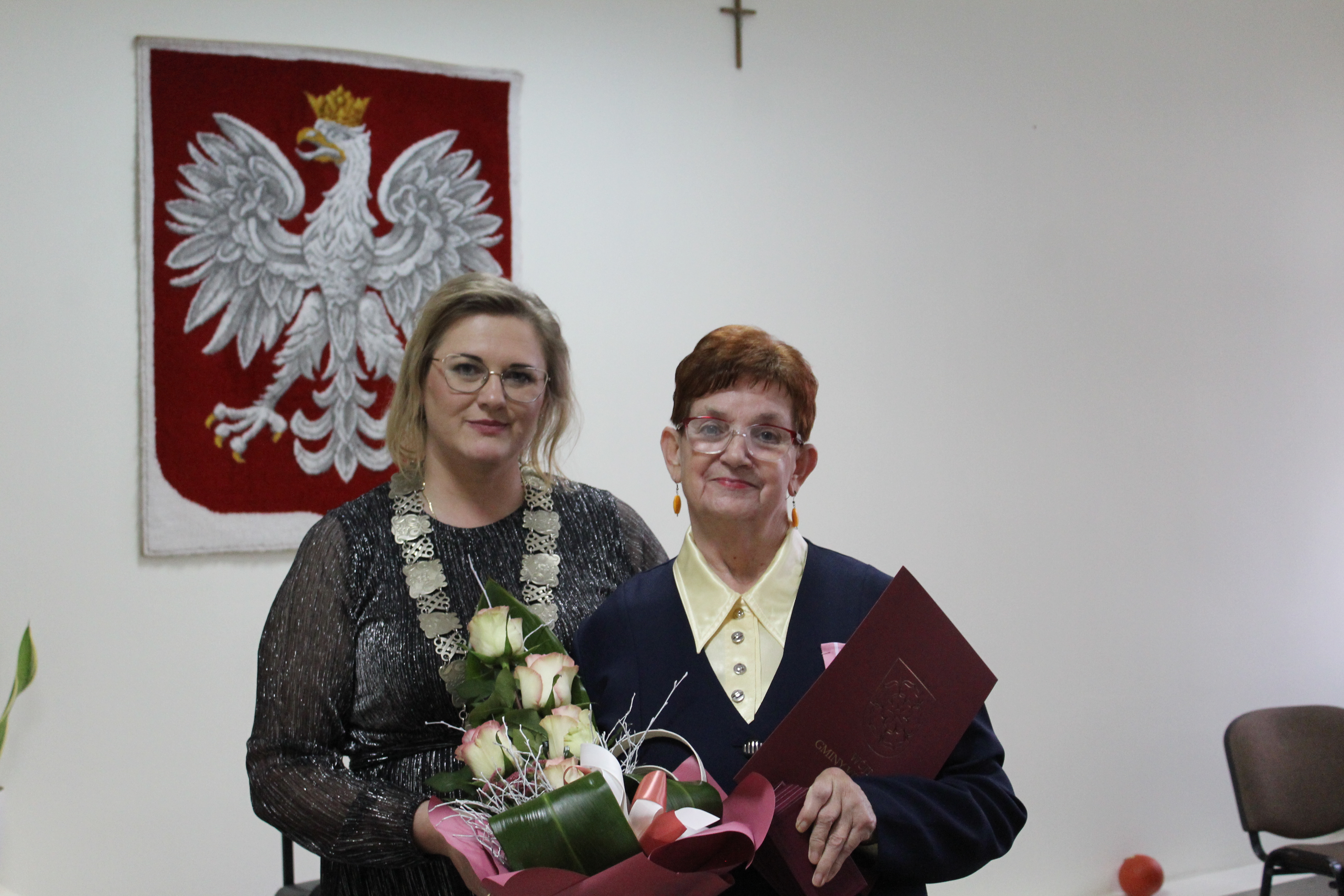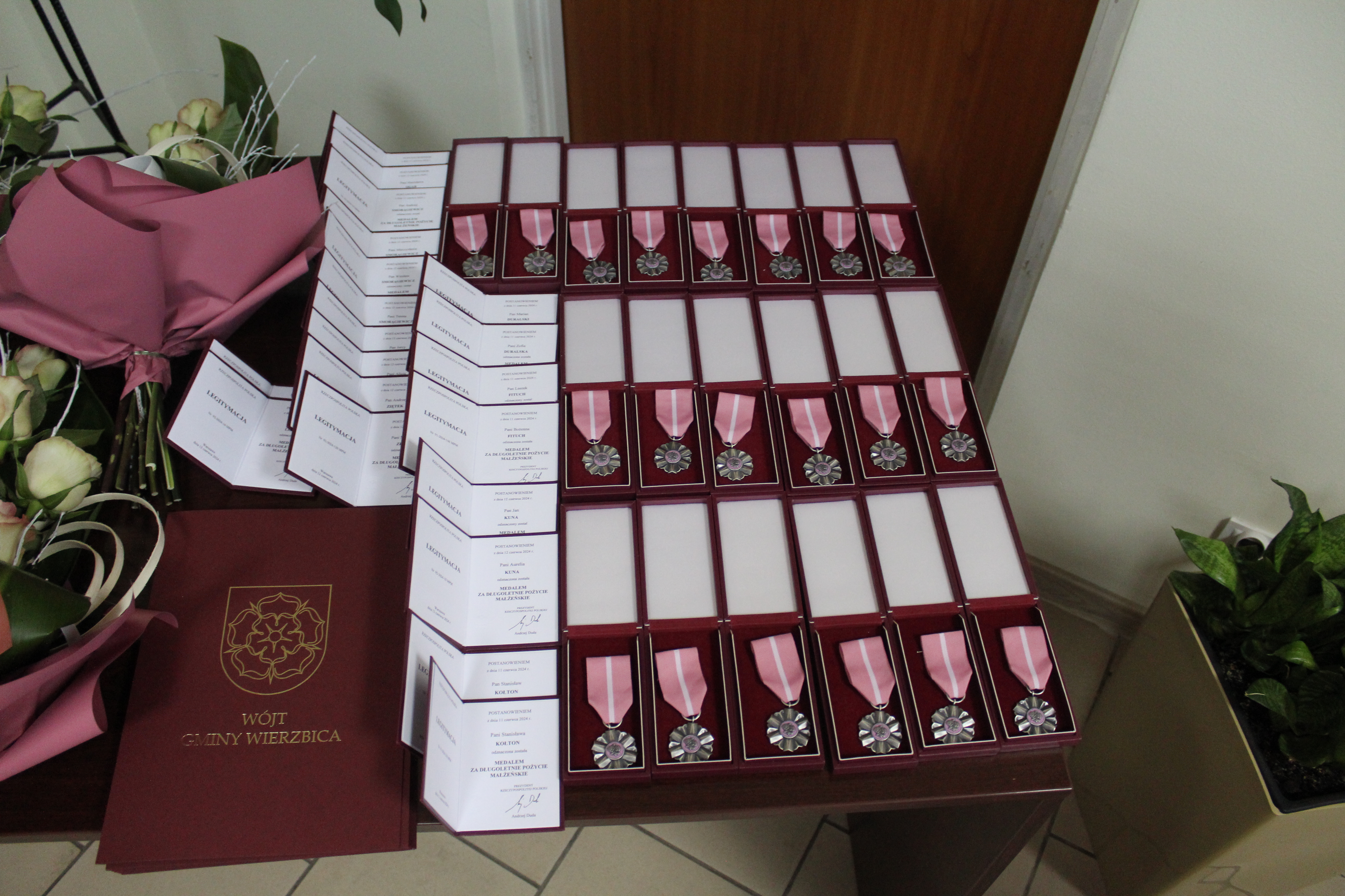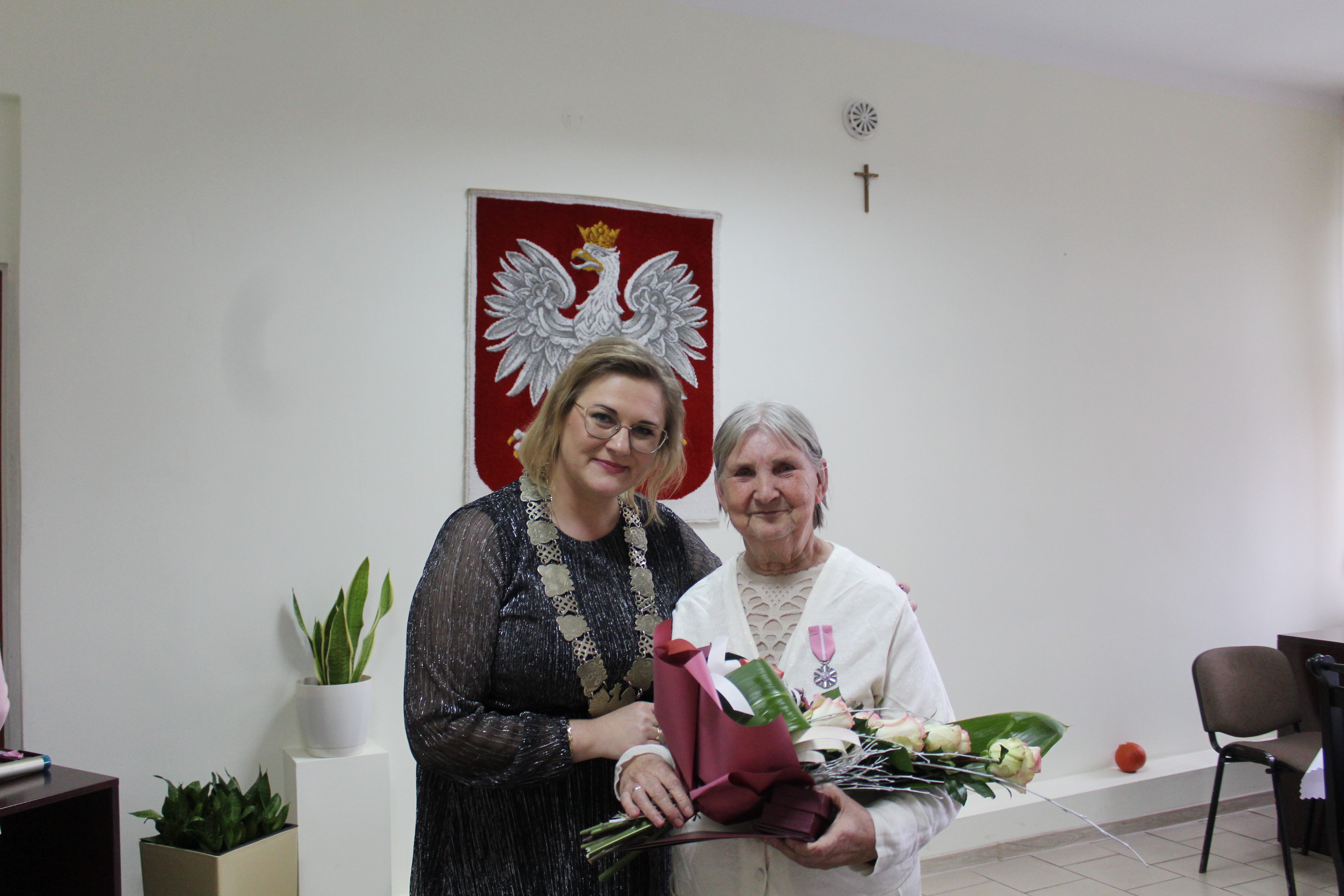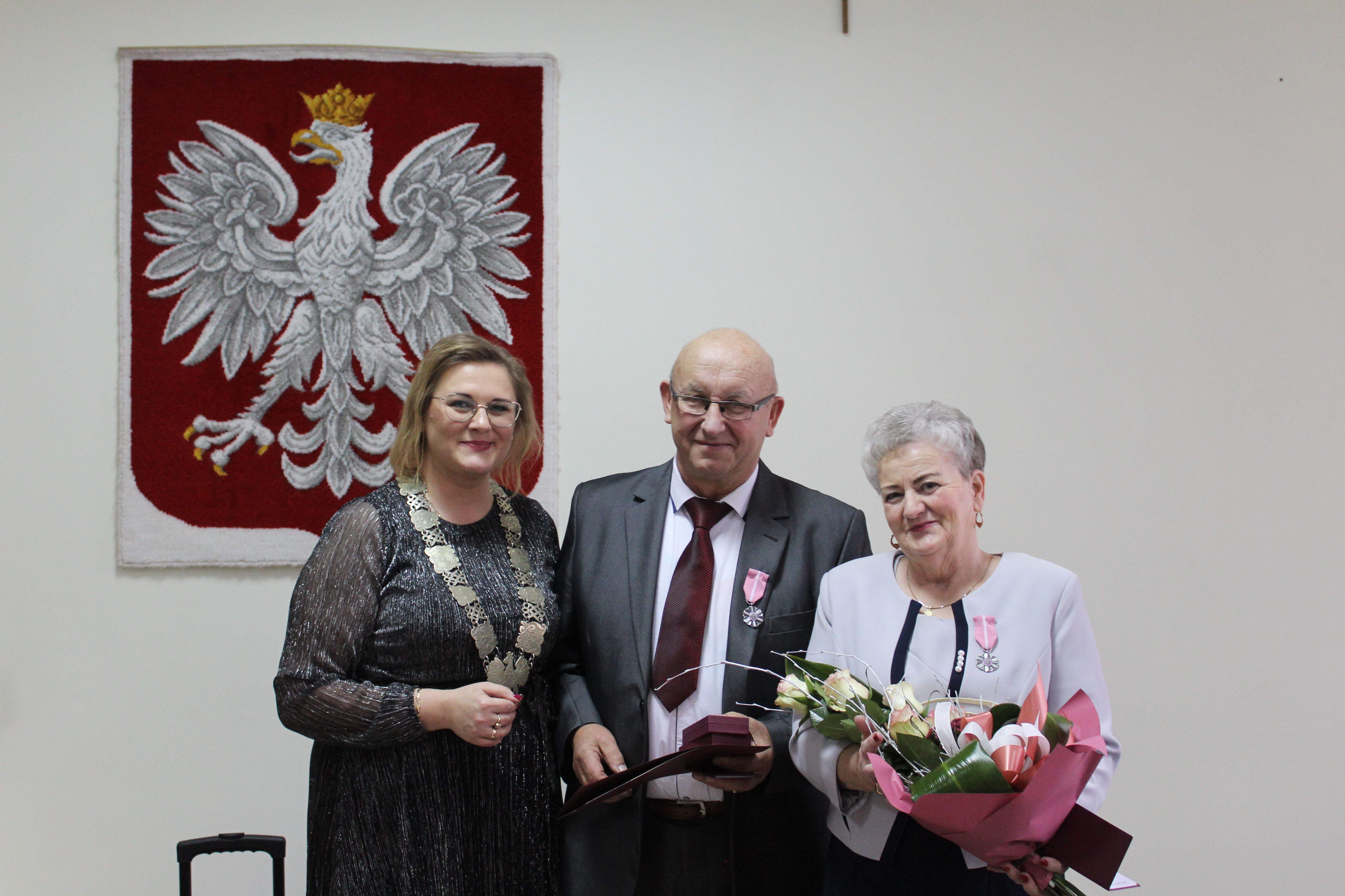 Następnie Wójt Gminy Wierzbica Agnieszka Jastrzębska wraz z Sekretarzem Gminy Eugeniuszem Wolszczakiem, kierownikiem Urzędu Stanu Cywilnego Sandrą Rosą i zastępcą kierownika USC Magdaleną Spasińską wręczyli medale przyznane Jubilatom przez Prezydenta Rzeczypospolitej Polskiej.