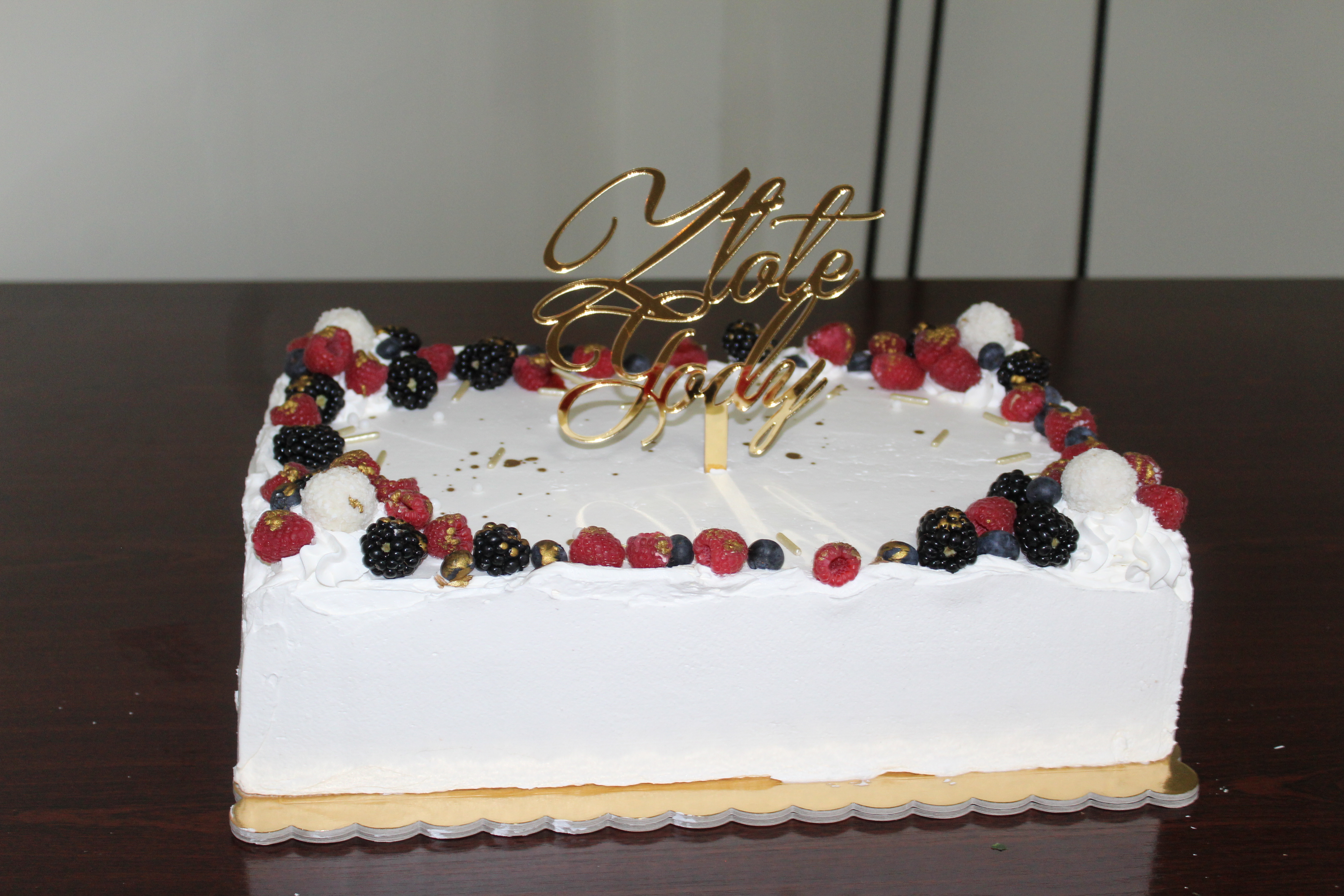 Nie mogło zabraknąć także jubileuszowego tortu, toastu i gromkiego STO LAT dla Szanownych Jubilatów.