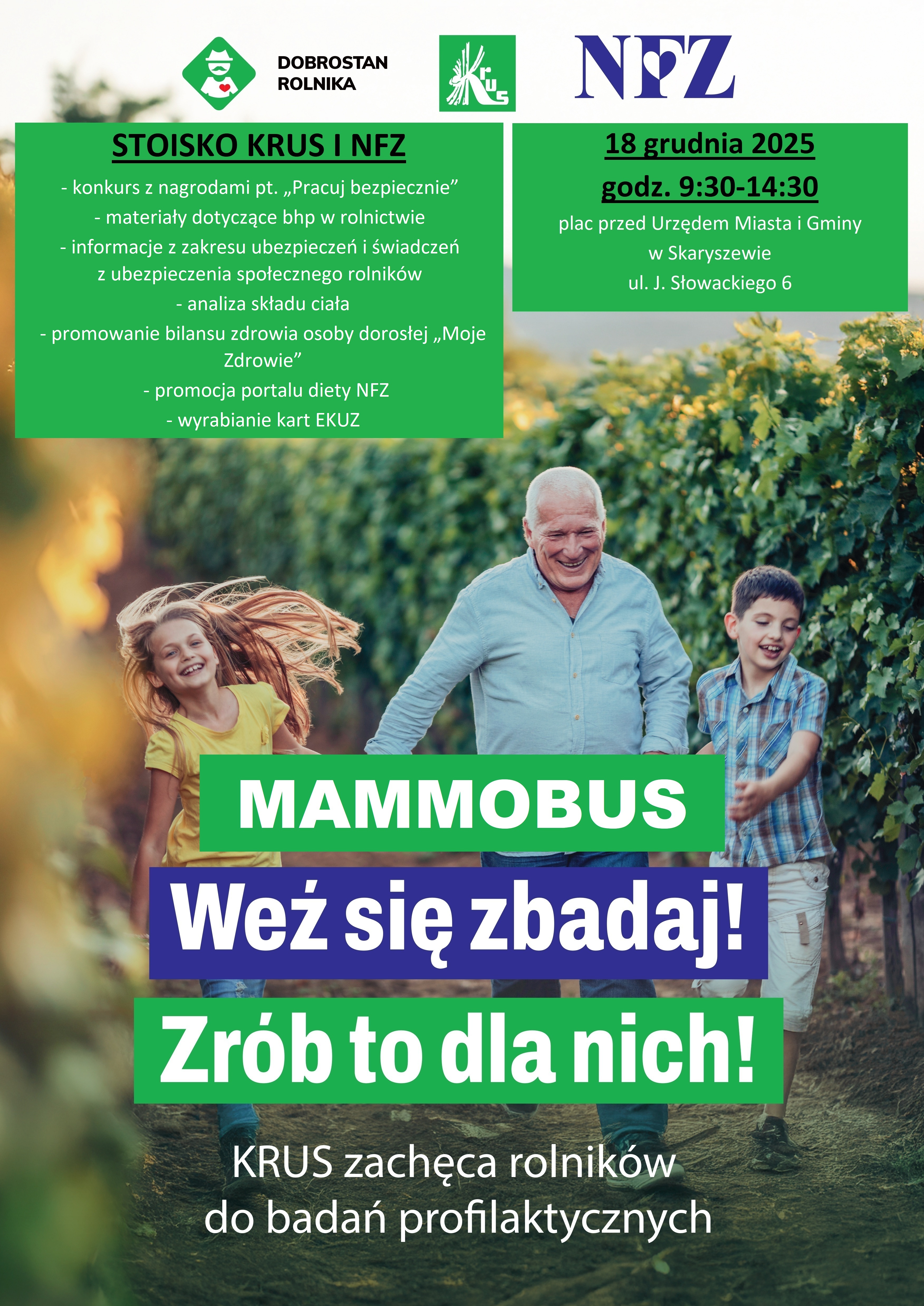 NFZ podczas tego wydarzenia zapewni obecność mammobusa oraz zostaną wykonane działania tj. pomiar masy ciała, analiza składu ciała i wyrabianie karty EKUZ.