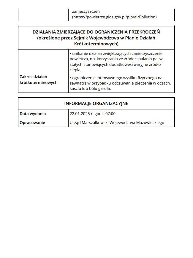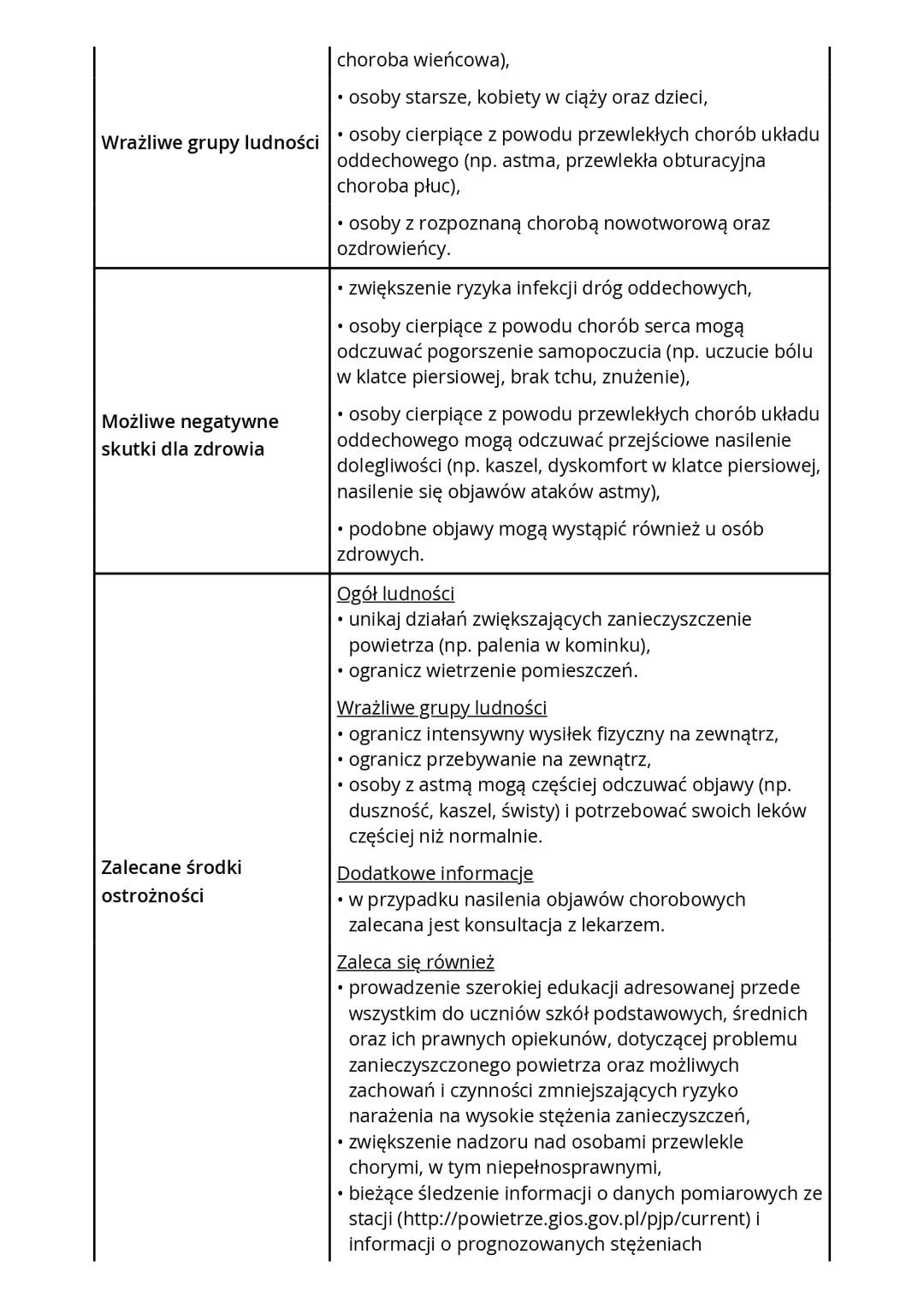 Powiadomienie o ryzyku wystąpienia przekroczenia średniodobowego poziomu dopuszczalnego dla pyłu zawieszonego PM10 w powietrza.