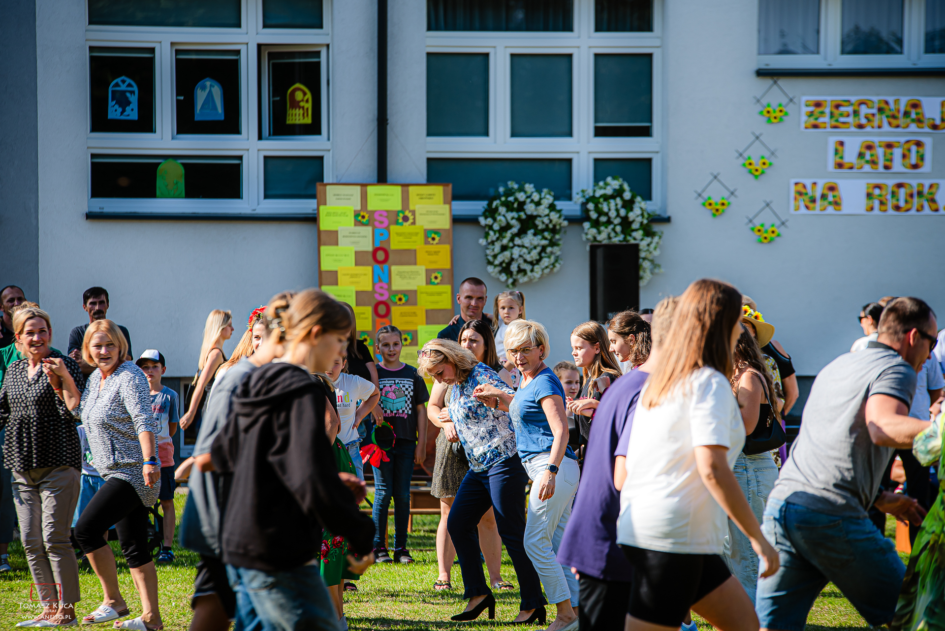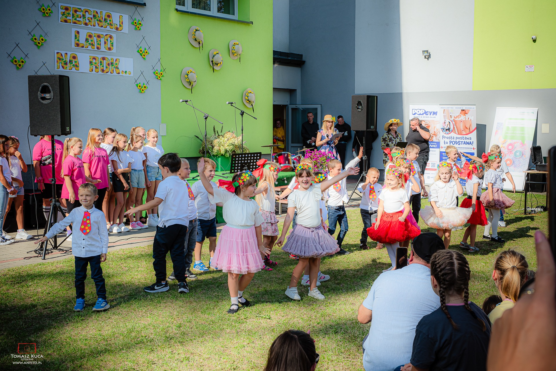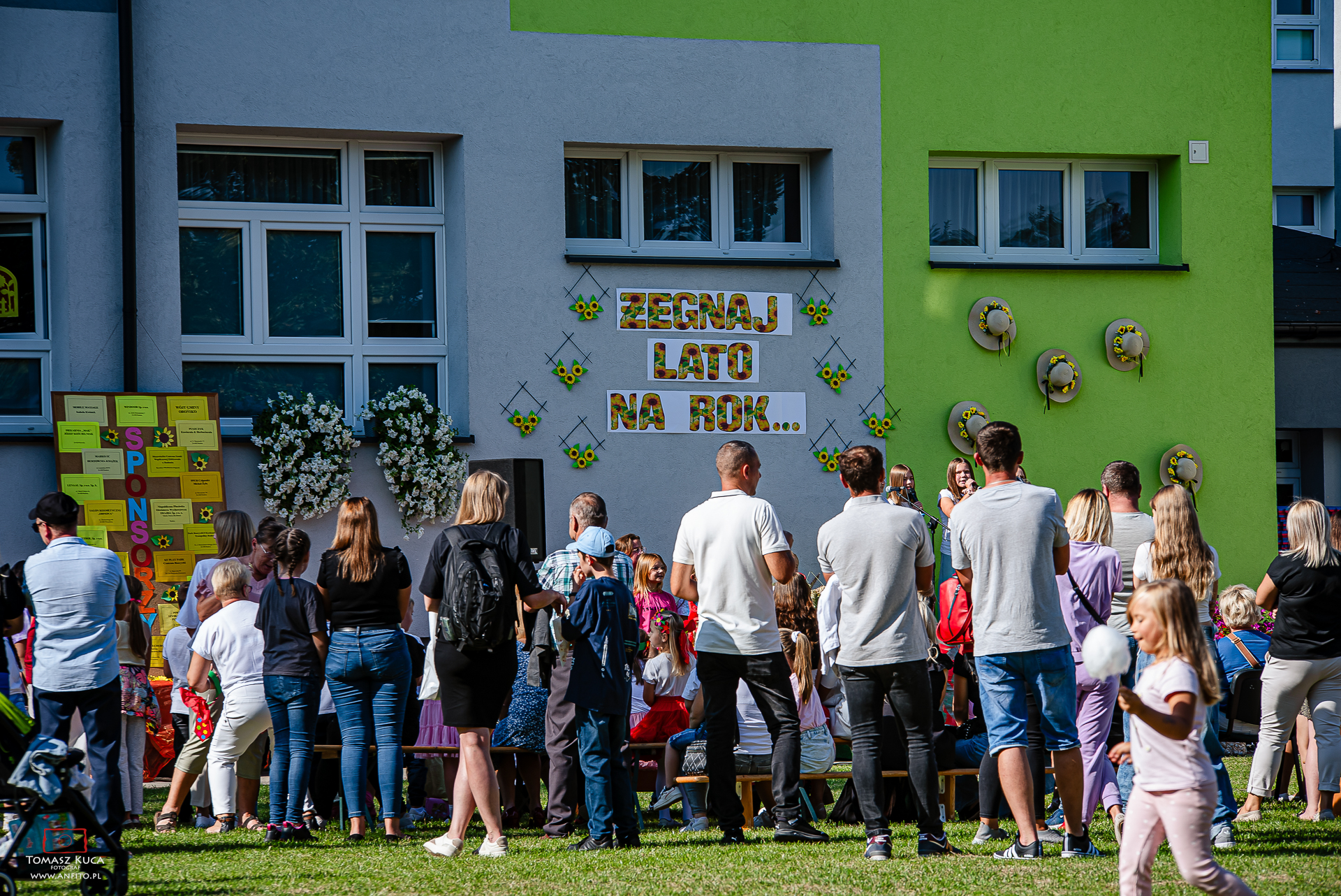 Wydarzeniu towarzyszyło wiele atrakcji m.in. przygotowano program artystyczny, w trakcie którego mogliśmy posłuchać wakacyjnych przebojów, śpiewu zespołów folklorystycznych Wolanki i Stowarzyszenia Kół Gospodyń Wiejskich w Rudzie Wielkiej. Mieliśmy także przyjemność oglądać pokazy akrobatyczne formacji Quick Flik czy wzruszający taniec tatusiów z córkami oraz wysłuchać nastrojowej piosenki „Żegnaj lato na rok” w wykonaniu nauczycieli, pracowników i przybyłych gości. Jednym z punktów programu było barwne przedstawienie pt.: „Kaczka Dziwaczka” w wykonaniu rodziców, które rozbawiło publiczność. Uczestnicy festynu odtańczyli wspólnie „Belgijkę” oraz bawili się przy muzyce zespołu rockowego L4.