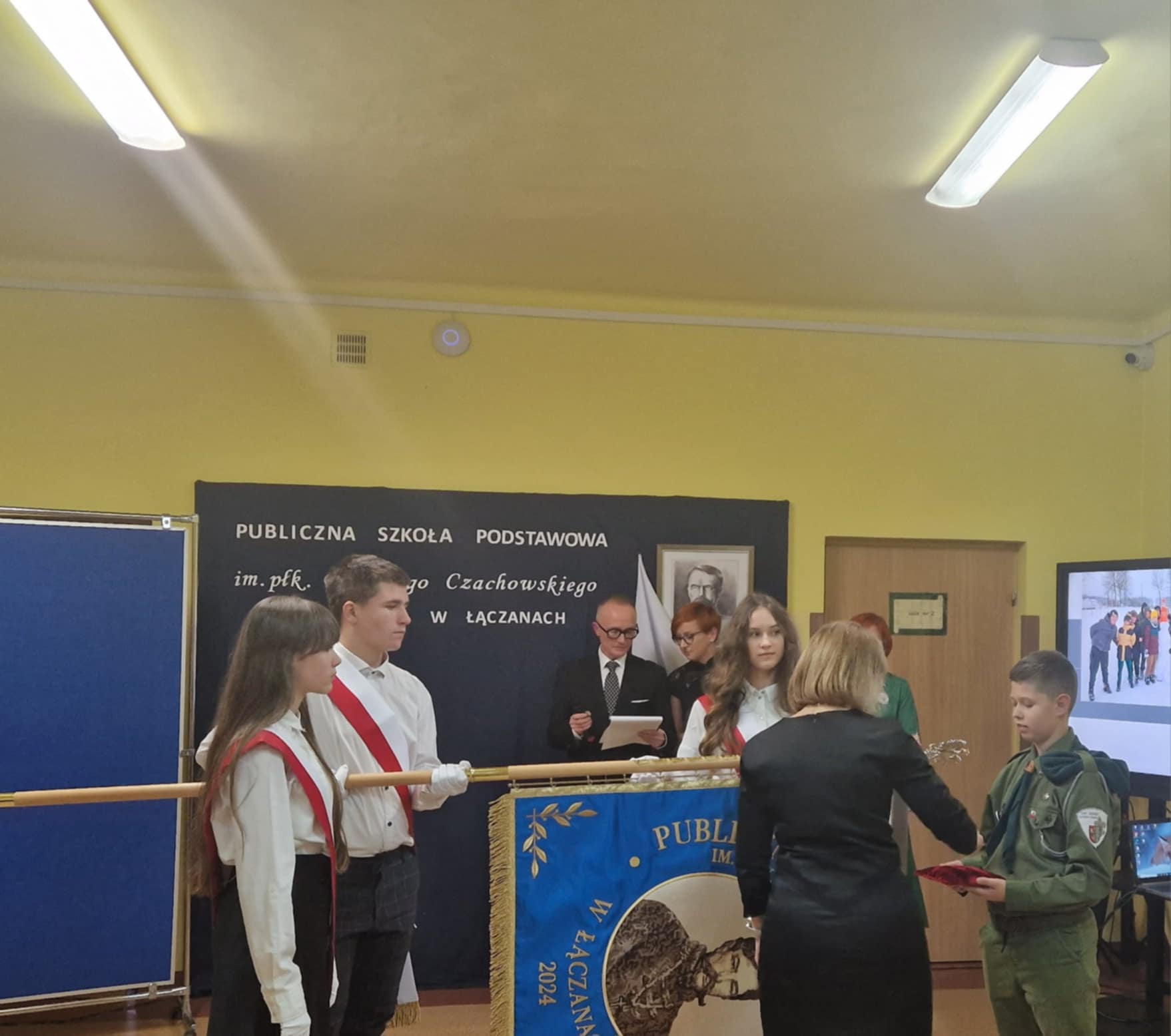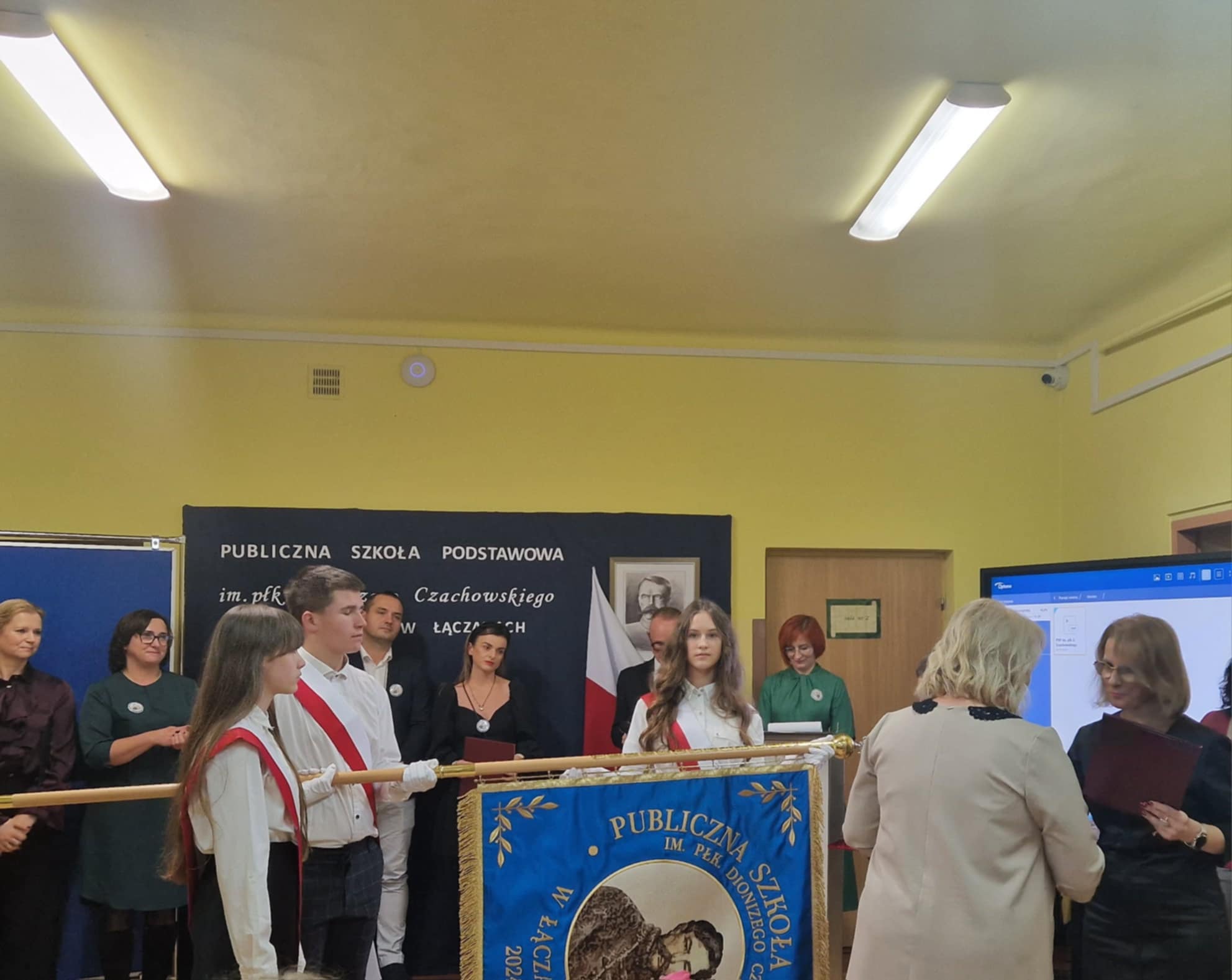 Kolejnym elementem uroczystości było przekazanie Sztandaru Szkoły, po czym przedstawiciele każdej klasy złożyli ślubowanie. Nie zabrakło również występów artystycznych przygotowanych przez uczniów Szkoły w Łączanach.