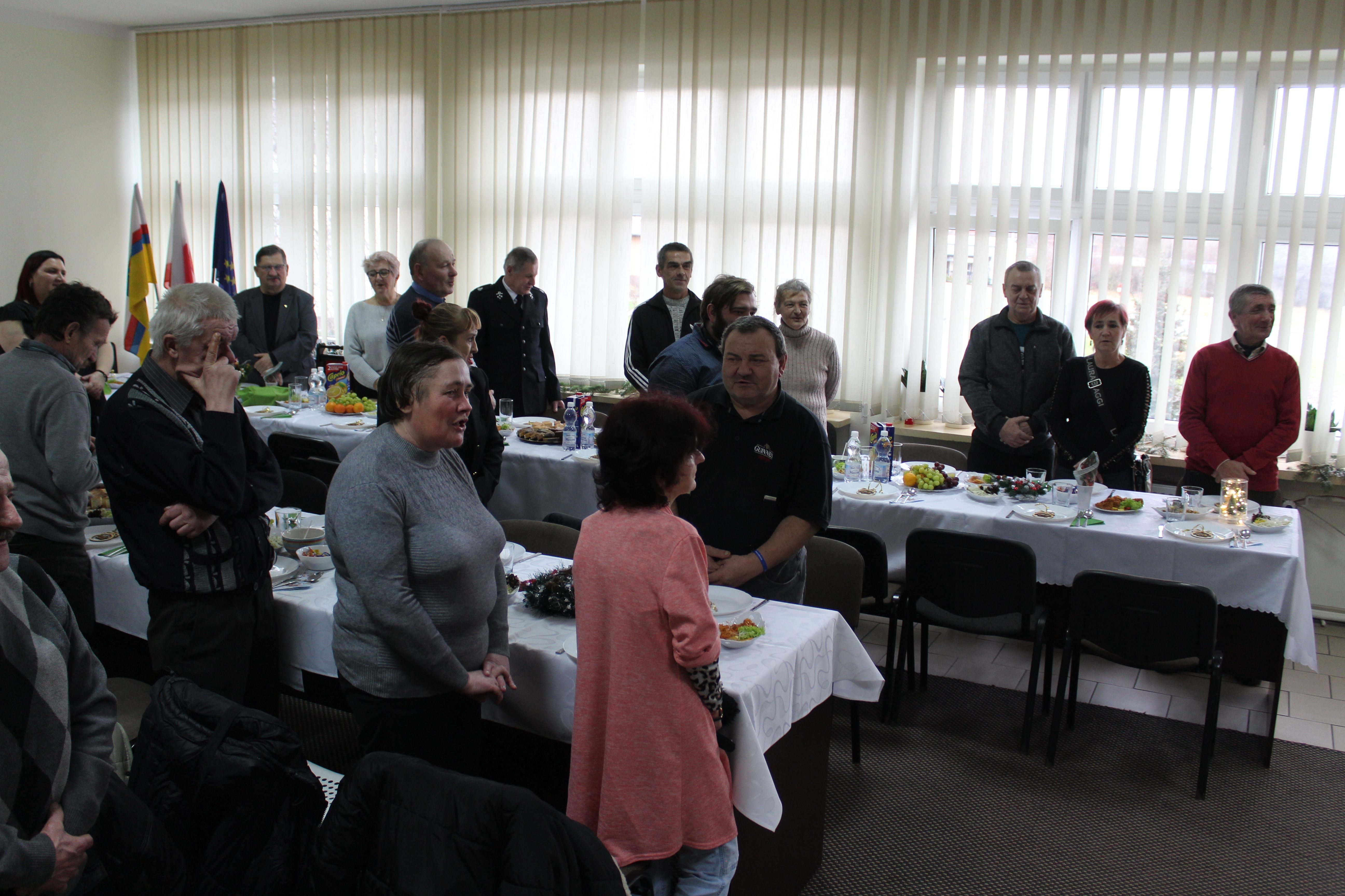 Przybyłych gości powitała Agnieszka Jastrzębska - Wójt Gminy Wierzbica wraz z p.o. Kierownika GOPS Mileną Rozwadowską. Ks. Julian Sobczyk – proboszcz parafii pw. Św. Stanisława Bp. i M. w Wierzbica poprzez wygłoszone Słowo Boże, błogosławieństwo oraz życzenia rozpoczął uroczystą wieczerzę. Do życzeń dołączyła się także Przewodnicząca Rady Gminy Wierzbica – Małgorzata Winiarska. Swoją obecnością zaszczycił także wszystkich zgromadzonych Kierownik ds. wsparcia geologii i górnictwa firmy Holcim Polska S.A. – Pan Wojciech Chudzik, który przekazał środki finansowe na zorganizowanie tego wspaniałego wydarzenia oraz na paczki zawierające niezbędne produkty spożywcze, które otrzymali uczestnicy Wigilii.